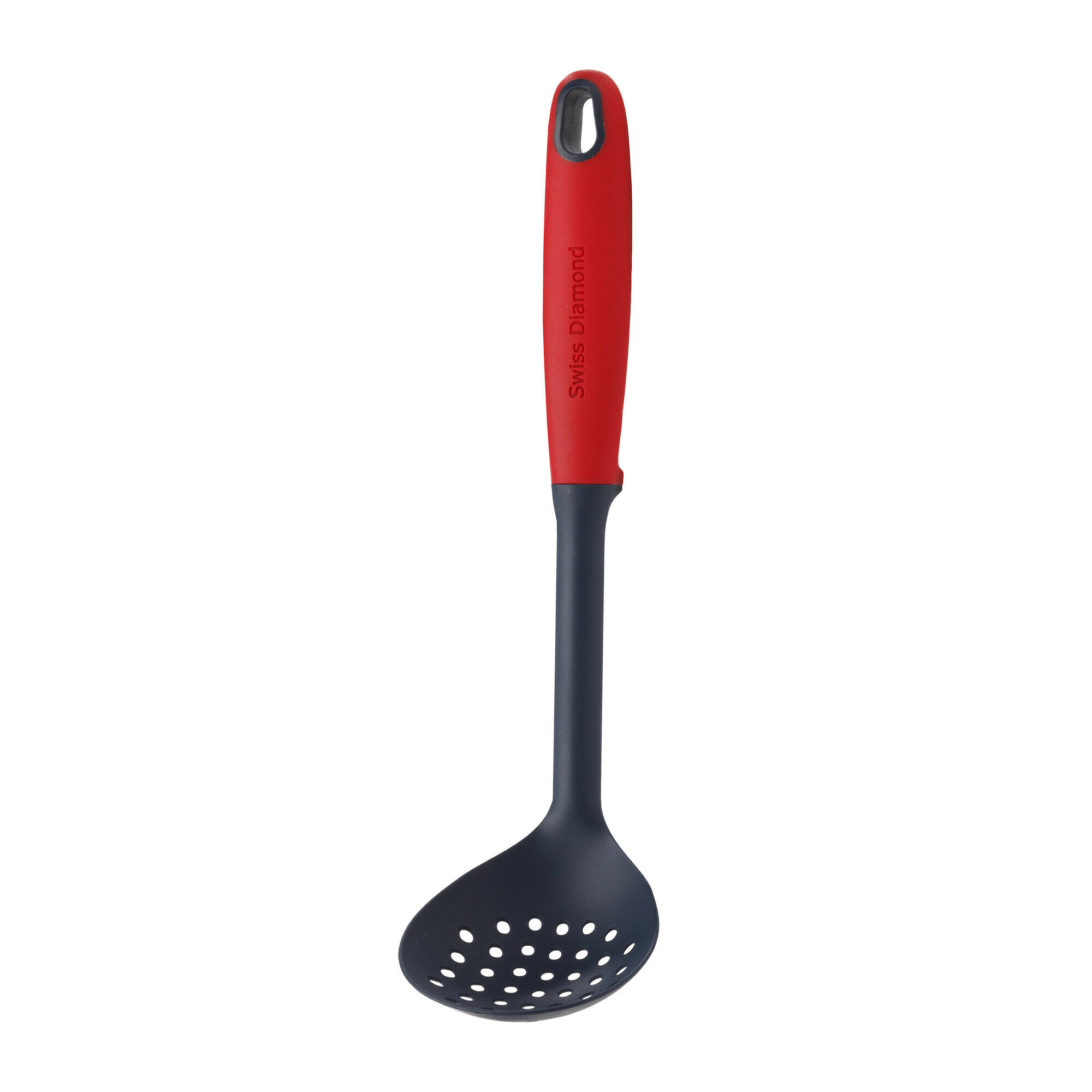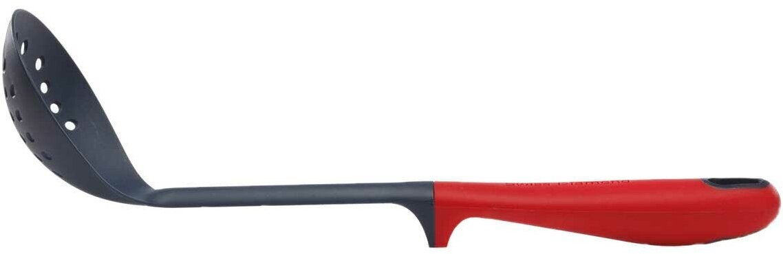 Шумовка небольшого размера с аккуратными дырочками очень удобна для приготовления бульонов. Ею хорошо снимать пену с бульона, вынимать сваренное мясо, перемешивать суп или доставать кусочки овощей на пробу. Двухцветная шумовка изготовлена из ABS пластика. Это самый практичный материал для кухонных аксессуаров. Крепкий пластик выдерживает даже очень активное использование, не повреждая антипригарное покрытие. Пара заметных деталей на ручке: отверстие для подвешивания аксессуара и держатель для упора рукоятки. Когда вы кладете аксессуар на стол, его рабочая поверхность будет всегда приподнятой, что позволит вам избежать появления пятен во время приготовления блюд. Мыть шумовку легко как вручную, так и в посудомоечной машине.