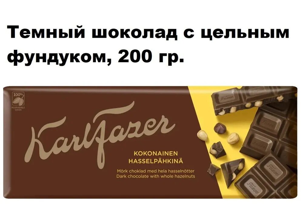 Шоколад Karl Fazer Темный с цельным фундуком 200г