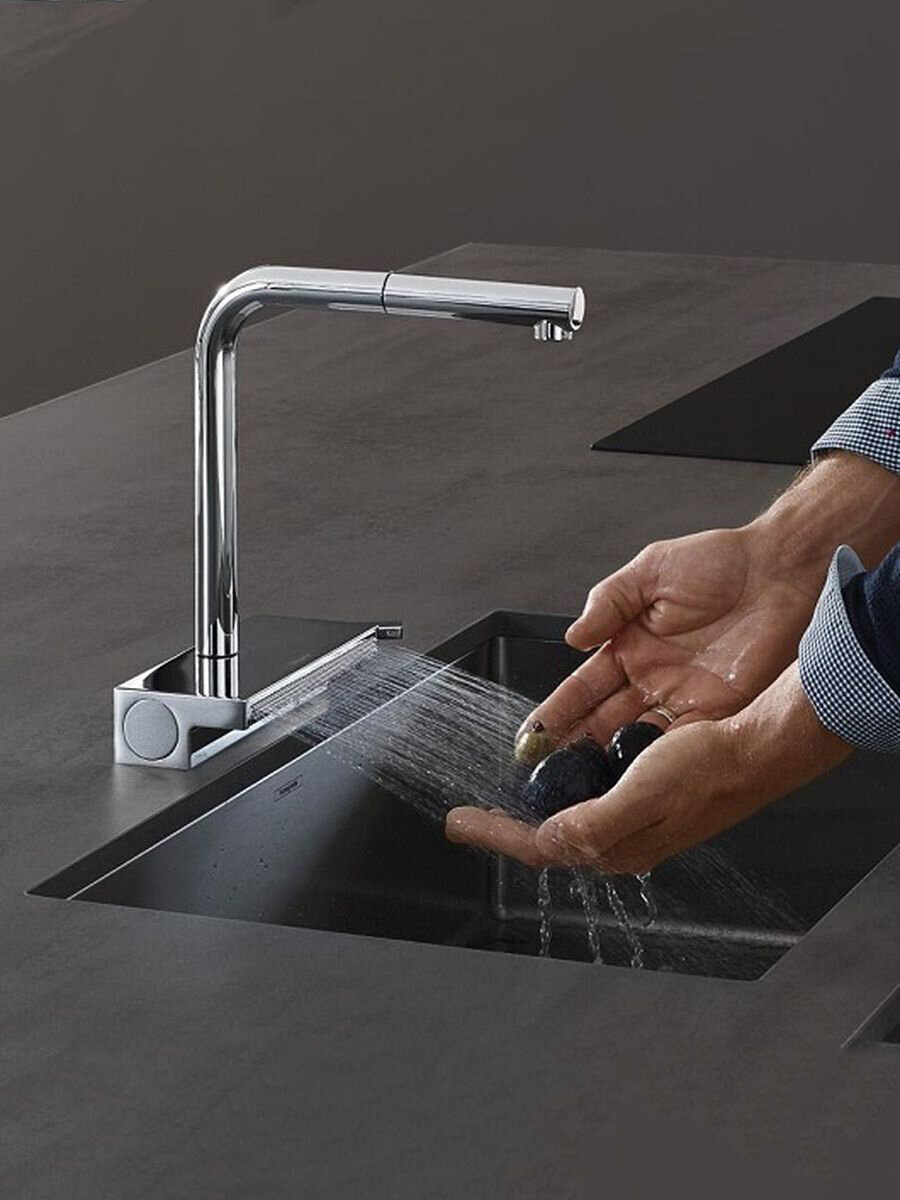 Больше комфорта и пространства для движения: Выдвижные форсунки или выдвижные изливы расширяют радиус действия вокруг кухонной мойки, чтобы одним движением доставить воду именно туда, где она нужна.