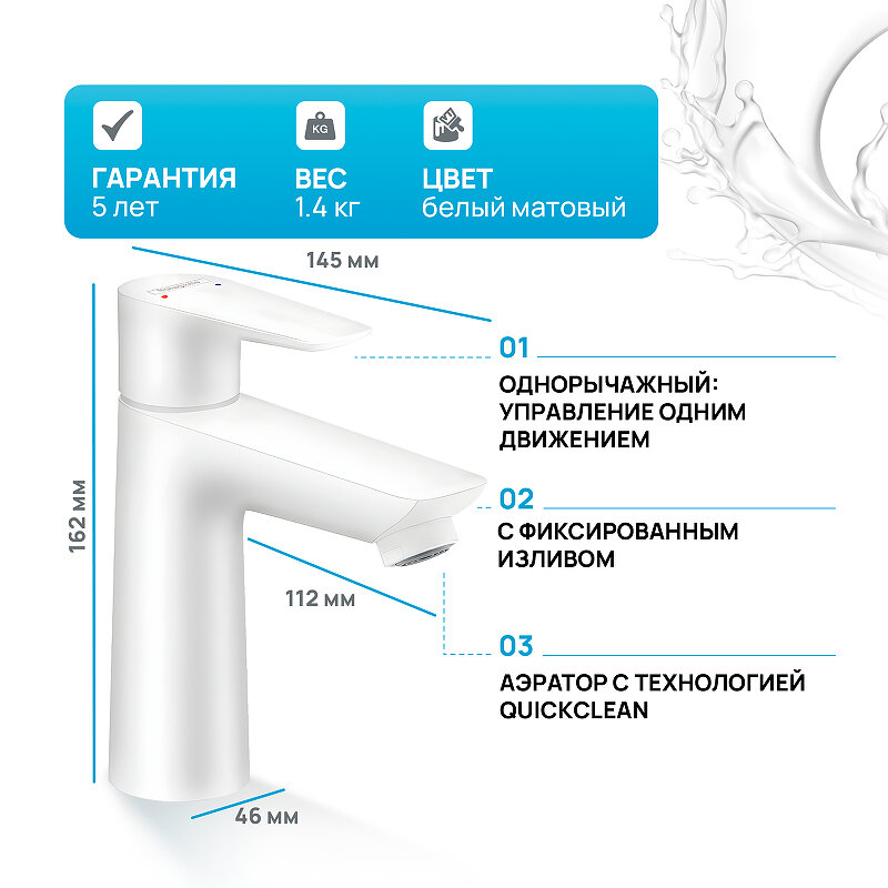 Смеситель для раковины Hansgrohe Talis E 71710700 Белый матовый