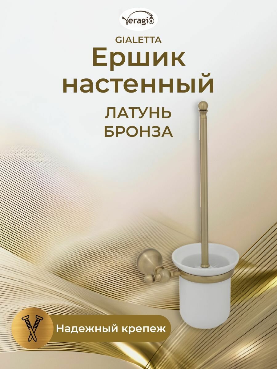 Ершик настенный VR.GIL-6490.BR серии GIALETTA - это один из самых необходимых аксессуаров для ванной комнаты. Ершик выполнен в классическом стиле из высококачественной керамики, которую очень легко мыть. Подвесная конструкция позволяет не занимать место на полу, и не мешает при мытье пола. Между керамикой и латунным кольцом предусмотрено пластиковое уплотнительное кольцо для правильной фиксации керамики, что исключает риск падения ерша. Материал — латунь, покрытие цвета Бронза выполняется методом чернения металла и последующего его зачищения металлическими щетками, что создает красивый эффект состаренного металла.