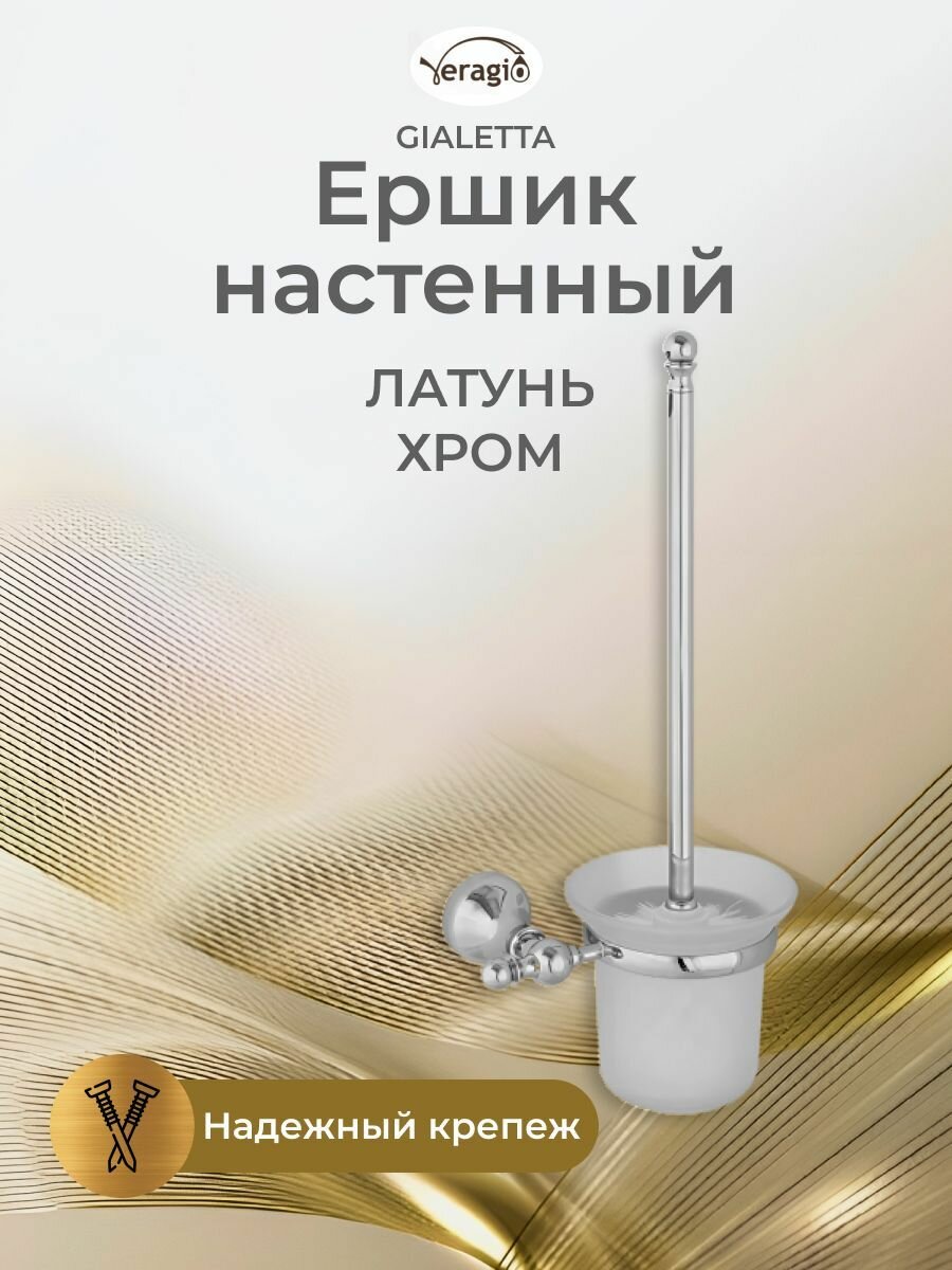 Ершик настенный VR.GIL-6490.CR серии GIALETTA - это один из самых необходимых аксессуаров для ванной комнаты. Ершик выполнен в классическом стиле из высококачественной стеклом, которую очень легко мыть. Подвесная конструкция позволяет не занимать место на полу, и не мешает при мытье пола. Между стеклом и латунным кольцом предусмотрено пластиковое уплотнительное кольцо для правильной фиксации стеклом, что исключает риск падения ерша. Материал — латунь. Хромо-никелевое гальваническое покрытие обеспечивает устойчивость к царапинам и придает изделию зеркальный блеск.