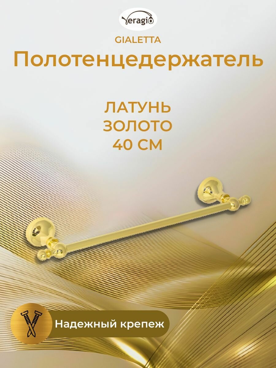 Полотенцедержатель VR.GIL-6428.DO серии GIALETTA - необходимый аксессуар для ванной комнаты. Его длина 40 см, что позволит разместить его даже на небольшом пространстве. Используется, как правило, для небольшого полотенца для рук. Очень удобно разместить также рядом с биде для небольшого полотенца. Материал: латунь. Гальваническое покрытие с использованием золота 24 карата с защитным прозрачным покрытием лаком сверху.