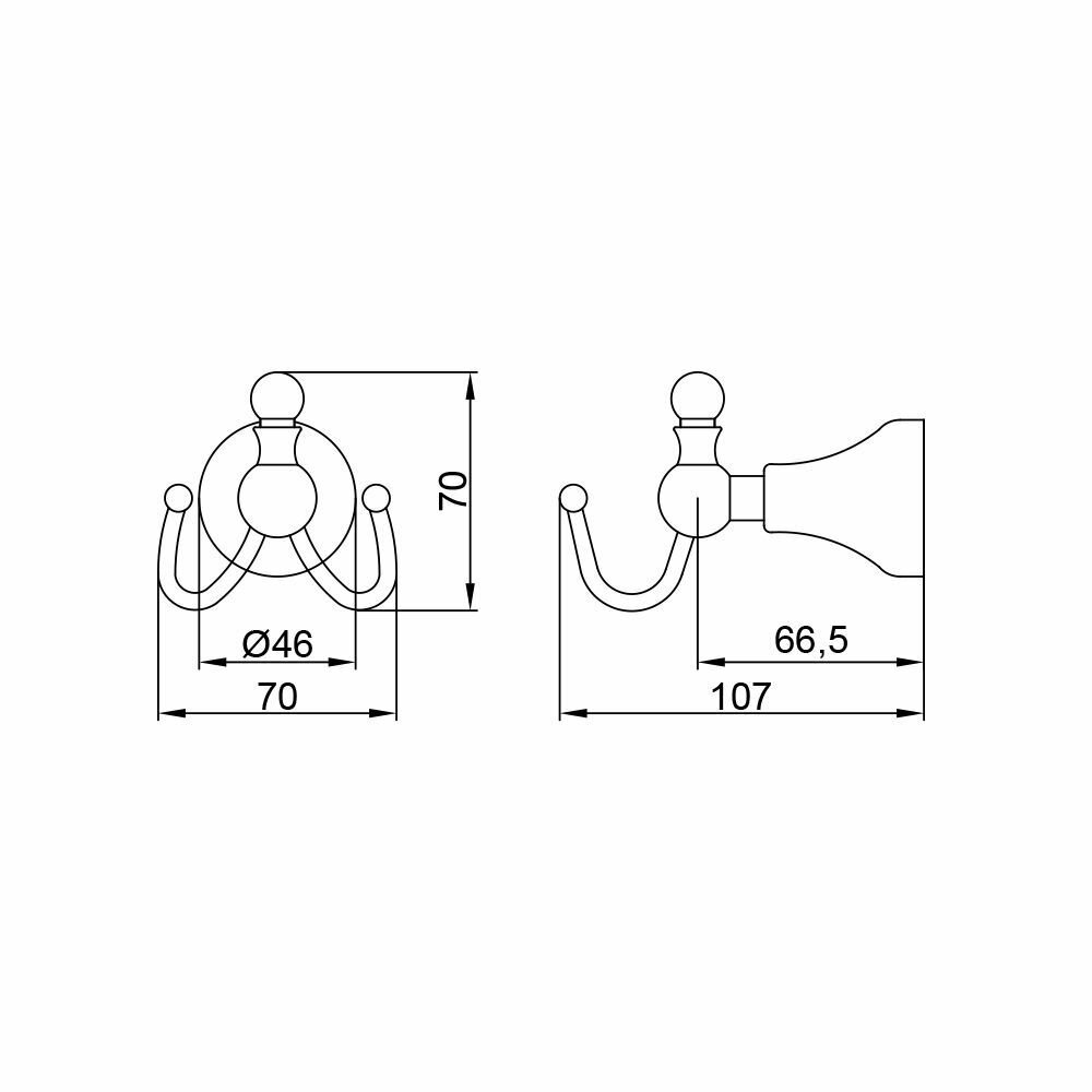Крючок двойной VR.GIL-6433.DO серии GIALETTA — безусловно самый необходимый предмет, который мы можете использовать не только для ванной комнаты, но и на кухне, и в корридоре, в кладовке. Конструкция данного крючка делает его очень функциональным — вы можете повесить сразу несколько полотенец, а также использовать его для подвеса фена за «петельку». Трудно переоценить функциональность и универсальность данного предмета. Вы можете повесить несколько крючков рядом, или придумать иные дизайнерские решения, но вы точно не сможете обойтись без него. Материал: латунь. Гальваническое покрытие с использованием золота 24 карата с защитным прозрачным покрытием лаком сверху.