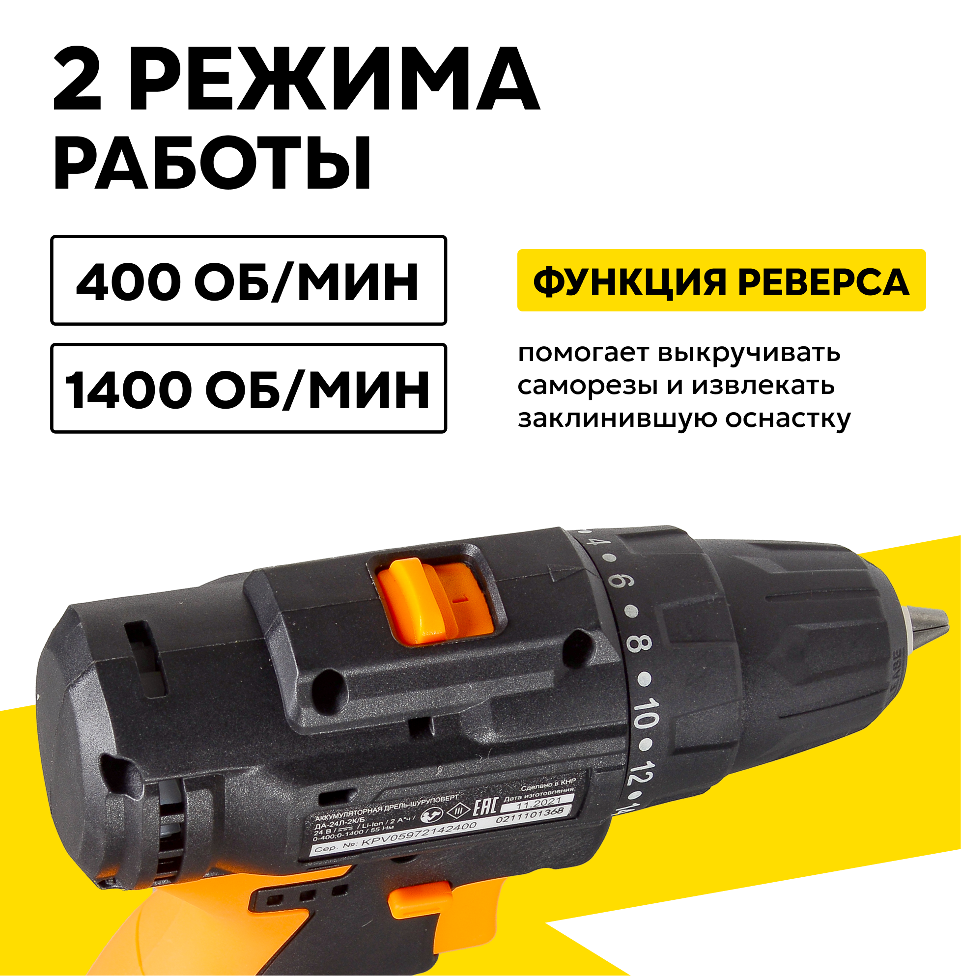 - Отзыв на дрель-шуруповёрт аккумуляторная ударная ВИХРЬ ДА-24Л-2КУ из Sulpak
