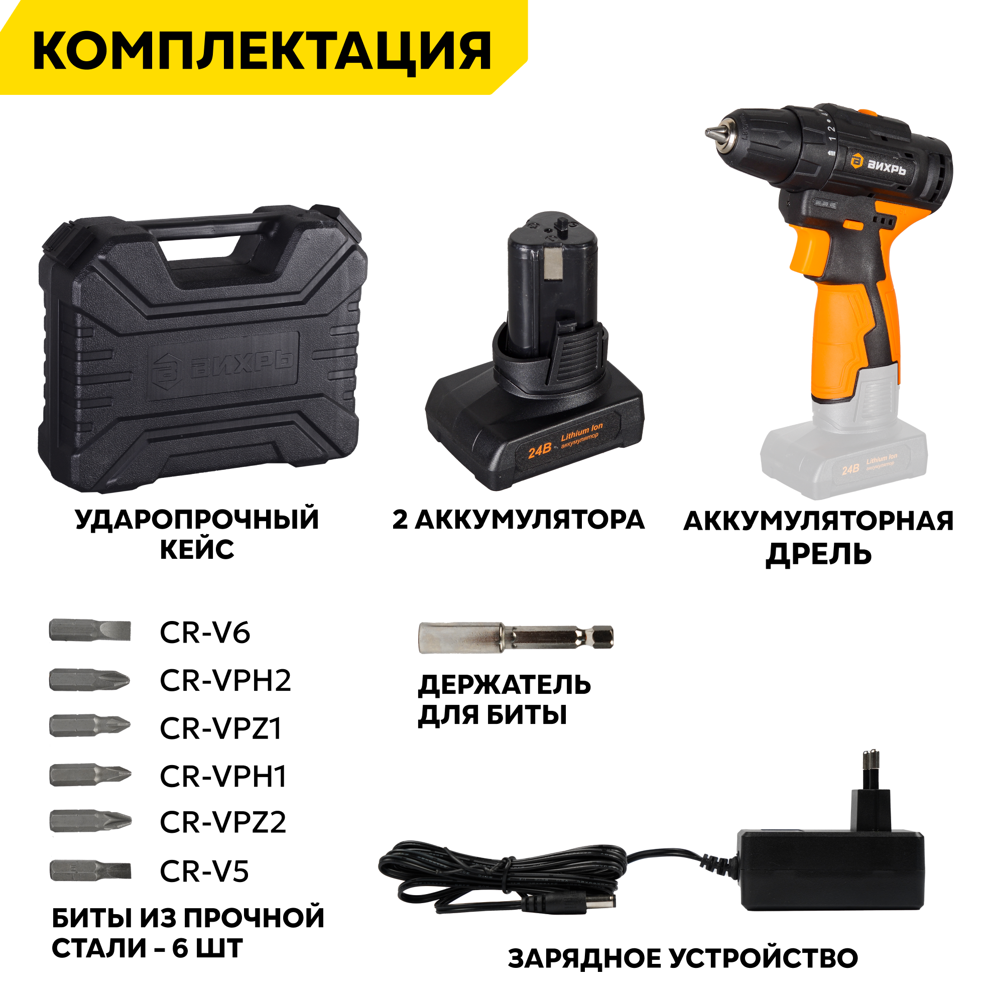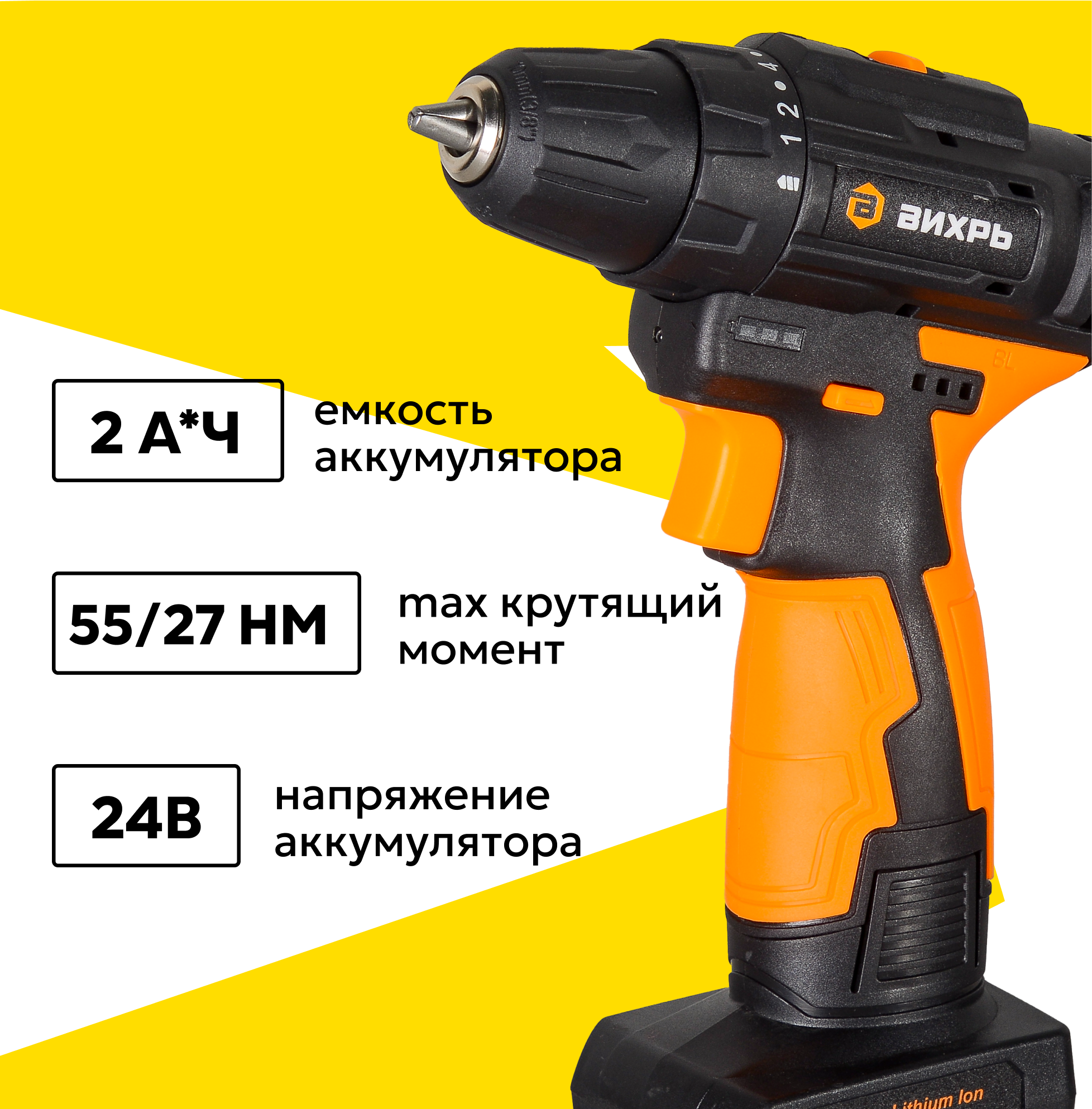 - Дрель-шуруповерт Вихрь ДА-24Л-2К/Б