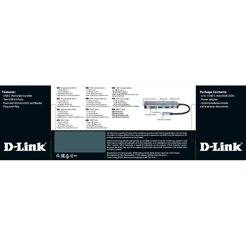 Концентратор USB Type-C D-Link DUB-2325/A1A 2 х USB 3.0 USB Type-C microSD SD серый