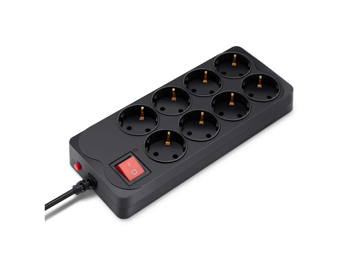 - Целых восемь розеток, защита от перегрева и замыкания, хороший толстый кабель