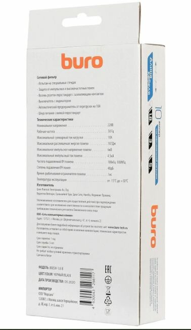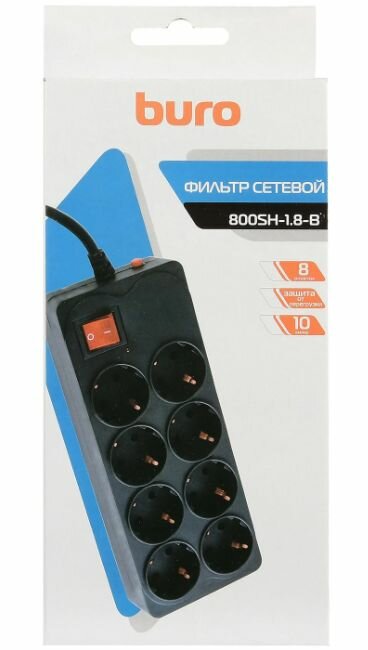 Сетевой фильтр BURO 1.8м черный 800SH-1.8-B