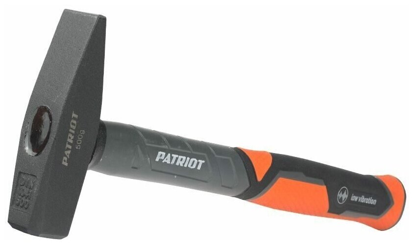 Молоток слесарный PATRIOT MHF-500 для ремонтных и строительных работ. Кованный боек сделан из закаленной стали. Фиберглассовая прорезиненная рукоять защищена от воздействия внешних агрессивных сред и выскальзывания при работе.