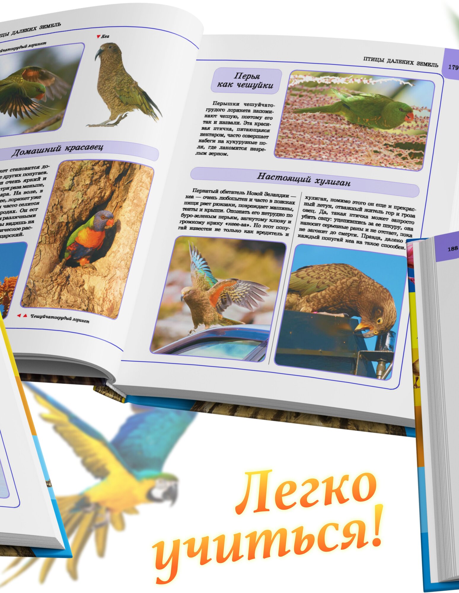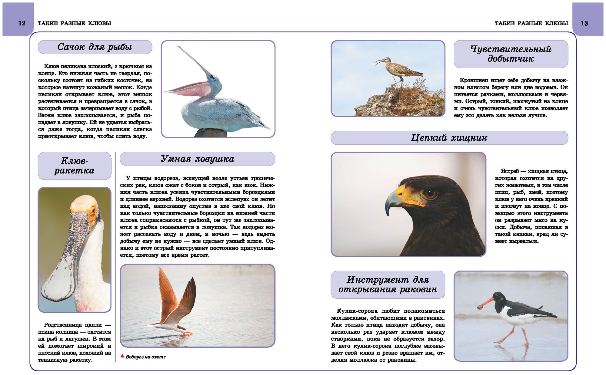 Прочитав книгу, вы узнаете, бывают ли у пернатых многоквартирные дома, как фламинго становится розовым, какая птица считается самой южной, как бакланы помогают рыбакам, умеют ли вороны петь, кто такие пернатые носороги и т. д. Кроме того, издание расскажет, чем отличаются птицы от остальных животных и какими появляются на свет птенцы, существуют ли птички весом 1,5 г, у каких пернатых за детьми ухаживает только отец. ISBN:978-985-18-4002-7
