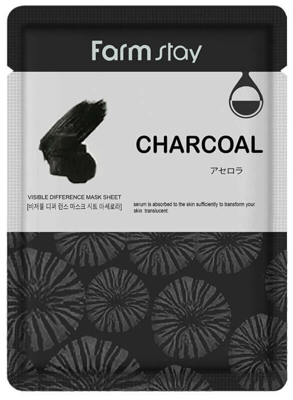 Минеральные компоненты, которые входят в состав угля помогают поддерживать кожу в здоровом состоянии, очищают ее и предотвращают появление прыщиков и излишков себума. Маска Farm Stay Visible Difference Mask Sheet Charcoal содержит экстракты ромашки и гамамелиса, обладающих антибактериальными и успокаивающими свойствами.
