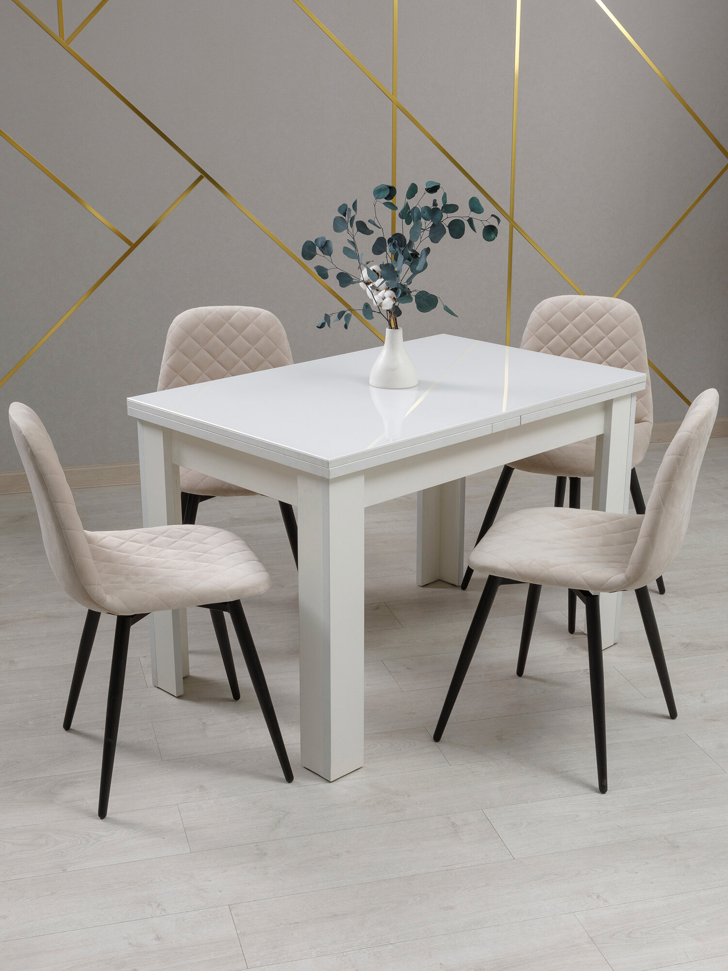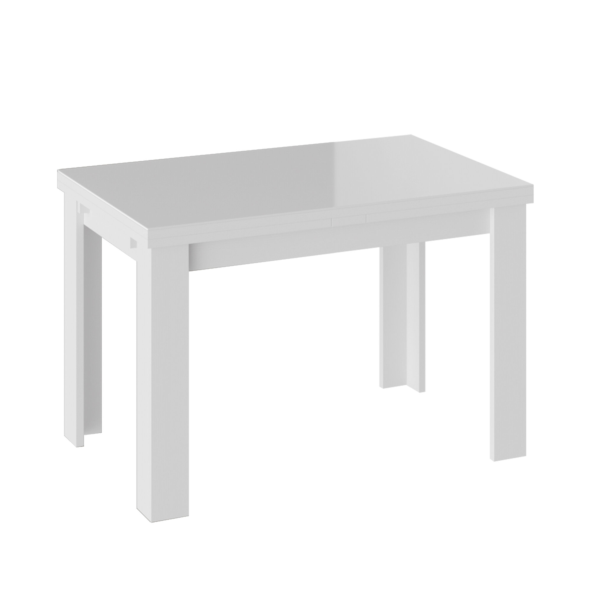 Кухонный стол раздвижной из материала ЛДСП, стекло в цвете «белый, белый глянец».