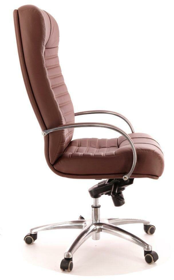 Everprof Atlant имеет продуманную эргономику, которая позволит комфортно находиться в кресле длительное время. Обивка модели выполнена из натуральной кожи, а в качестве наполнителя использован высокоплотный полиуретан. Крестовина изготовлена из алюминия, а ее диаметр составляет 700 мм.