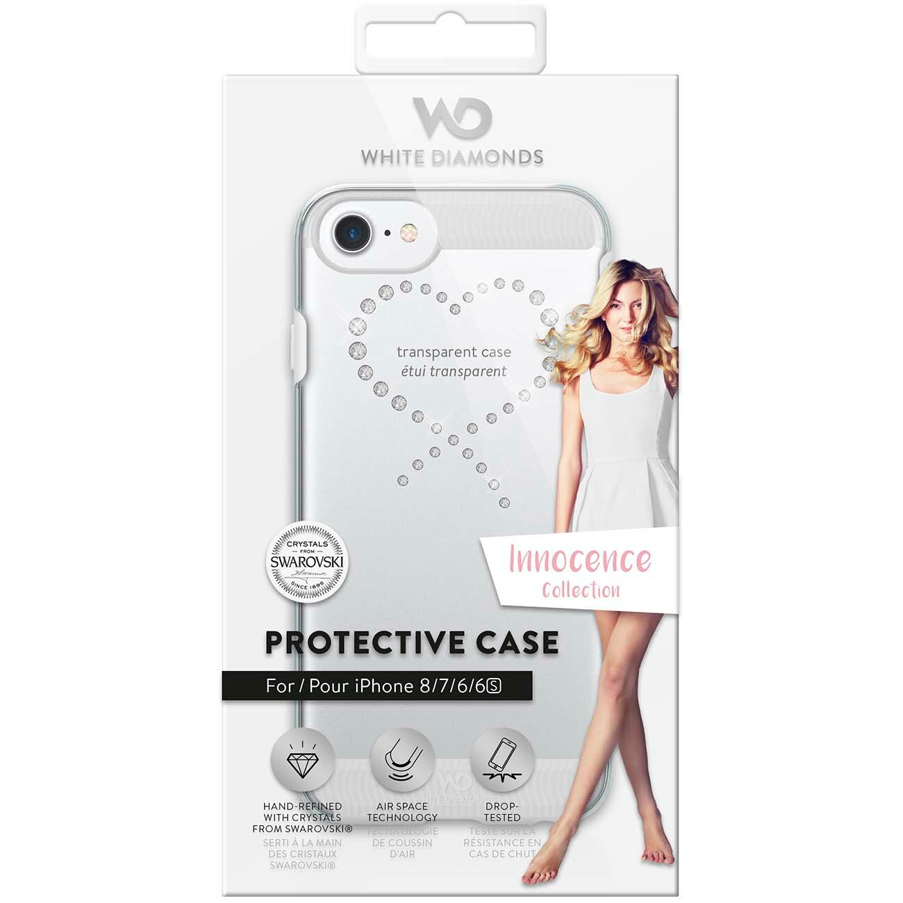 Лёгкий и надёжный чехол White Diamonds серии Innocence предназначен для защиты смартфона iPhone 11 8, 7, 6, 6S от всевозможных повреждений. Аксессуар плотно облегает аппарат, оставляя свободным доступ к кнопкам управления, камере и разъёмам для гарнитуры и зарядного устройства.невидимая броняКлип-кейс выполнен по технологии Air Space. Специальные вставки из термопластичного полиуретана эффективно поглощают силу удара и минимизируют его влияние на смартфон. Приподнятый скошенный край накладки из TPU-материала дополнительно предохраняет дисплей от царапин и потёртостей.