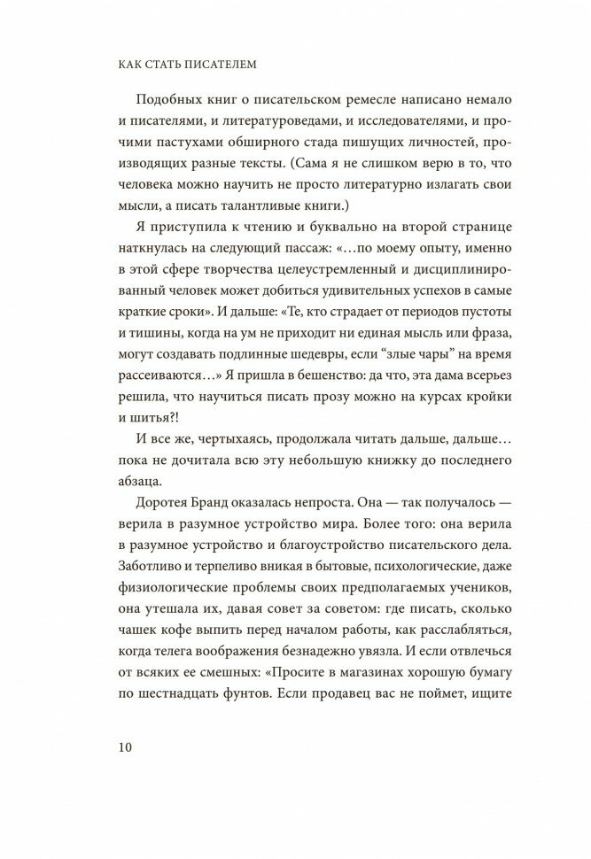 За несколько десятилетий до того, как исследователи мозга обнаружили, какую роль играют правое и левое полушария во всех человеческих начинаниях, Бранд учила студентов смотреть на мир «по-писательски», сохранять спокойствие и вызывать в себе внутреннего автора, когда это необходимо. Ее спокойный, расслабленный тон и полезные практические упражнения придадут читателю сил, научат сохранять спокойствие и не зависеть от вдохновения.