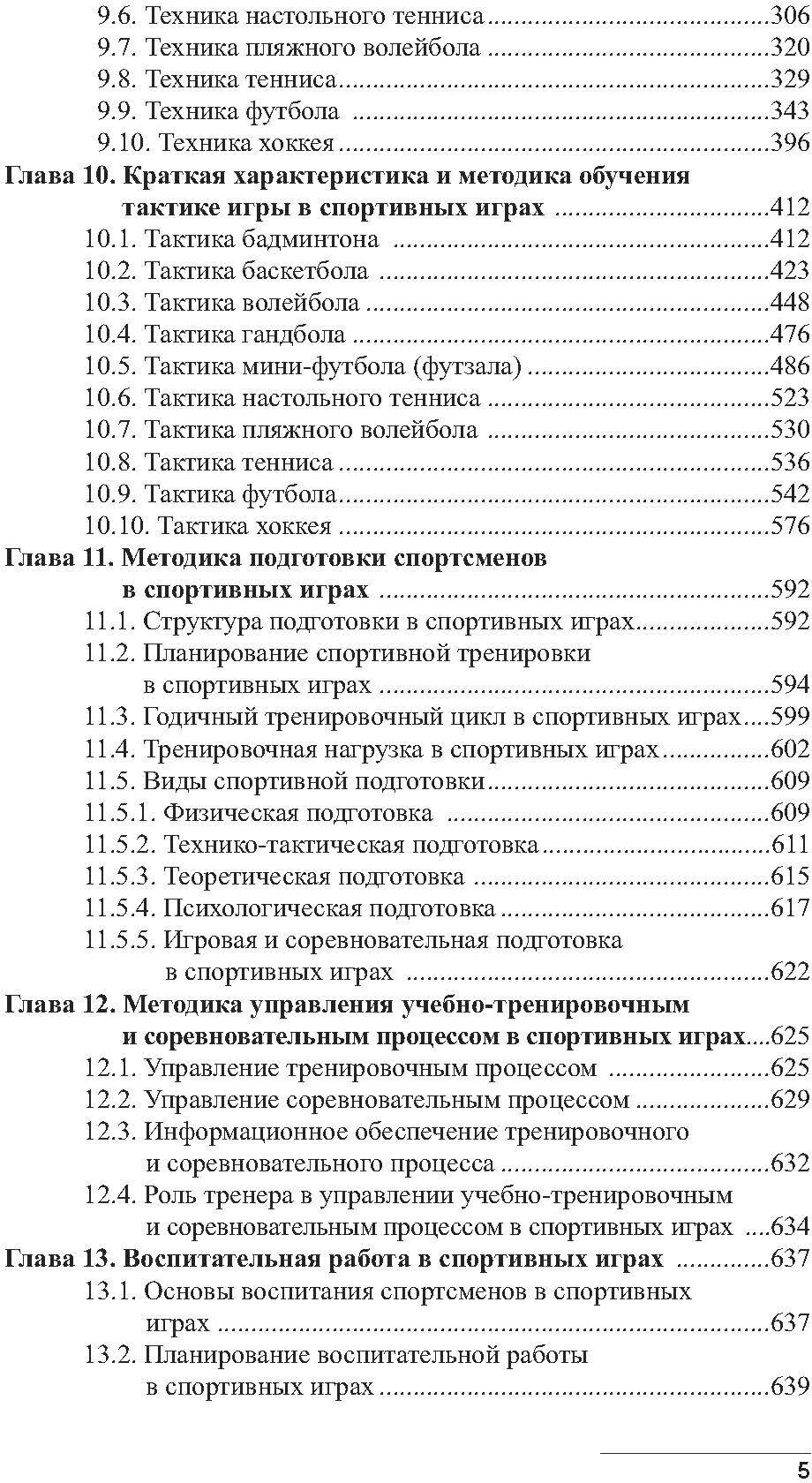 В учебнике обобщен материал прошлых лет, дополненный собственными исследованиями автора в различных видах спортивных игр. Наряду с классическими видами спортивных игр - бадминтон, баскетбол, волейбол, гандбол, настольный теннис, теннис, футбол и хоккей впервые представлены такие относительно "молодые" виды спортивных игр, находящиеся на подъеме в нашей стране, как мини-футбол (футзал), пляжный волейбол, регби.