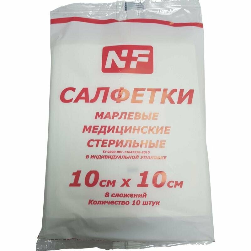 Салфетки марлевые медицинские стерильные 10х10см 8-слойные 10шт Ньюфарм ООО (579829)