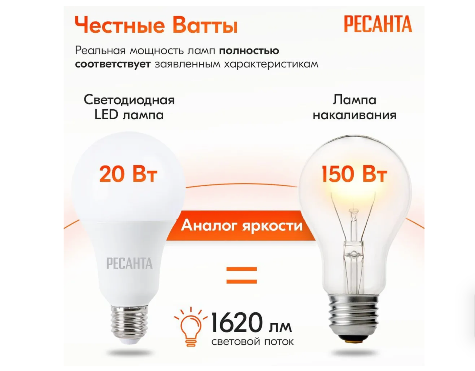 Светодиодная лампа Ресанта LL-R-A80-20W-230-4K-E27
