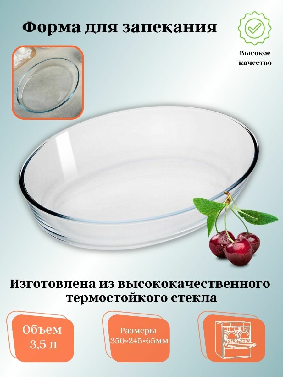 Форма для запекания из высококачественного термостойкого стекла.Применяется для приготовления пищи в духовке, жарочном шкафу, микроволновой печи.Подходит для хранения и замораживания различных продуктов, а также для сервировки и декоративного оформления.Производитель: Россия.