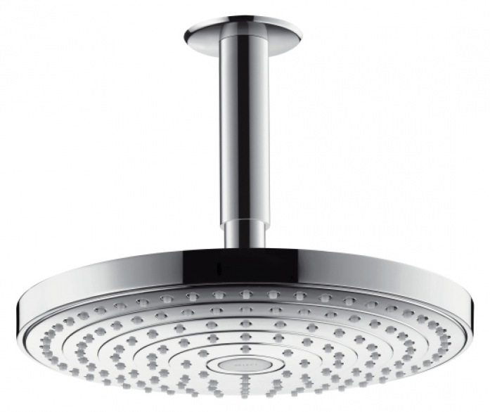 Верхний душ Hansgrohe Raindance Select S 240 2jet станет прекрасным элементом дизайна ванной комнаты. Внешняя часть системы произведена из экологичной латуни – прочного материала, устойчивого к коррозии и механическим повреждениям. Глянцевое хромовое покрытие не царапается и не тускнеет.