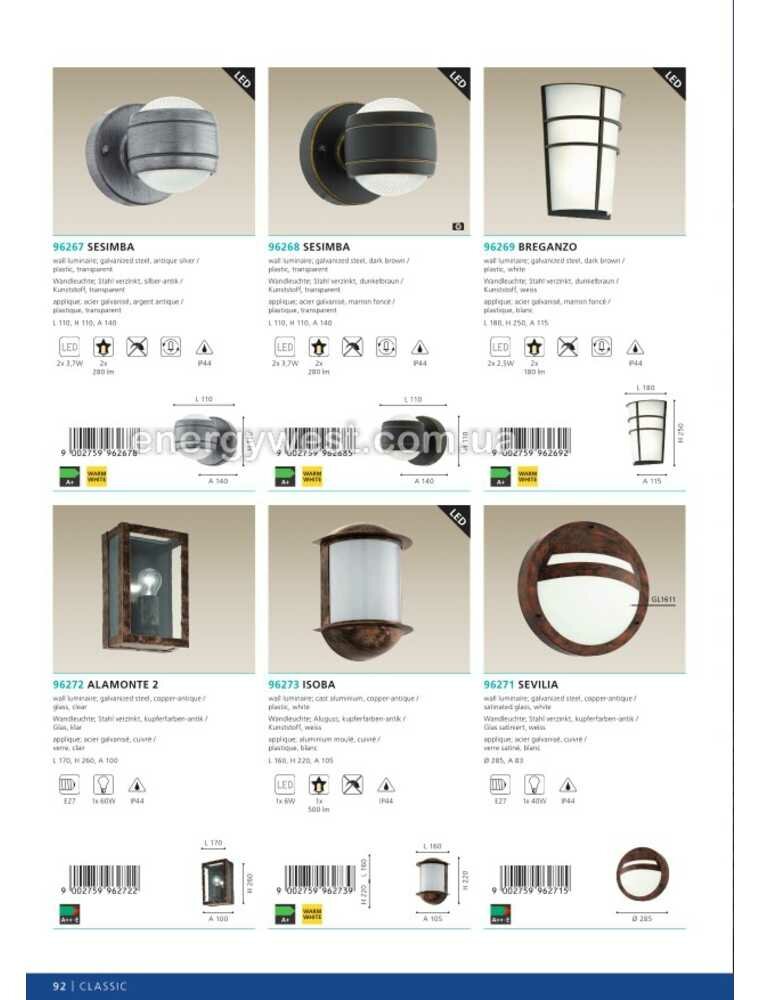 Сервис сравнения цен СкидкаГИД предлагает сравнить цены на товар «Уличный настенный светильник EGLO SESIMBA 96267 серый»