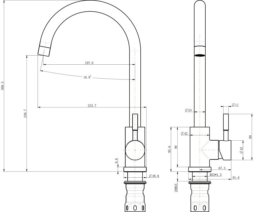 | Высота излива_диапазоны | От 19,8 до 25 см |