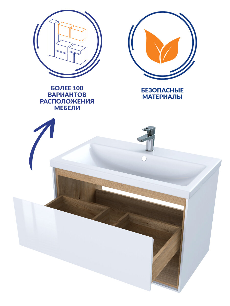 Модель: Louna 80 SZ-LOU-CO80/Wh подвесная Белый глянец дуб Эврика