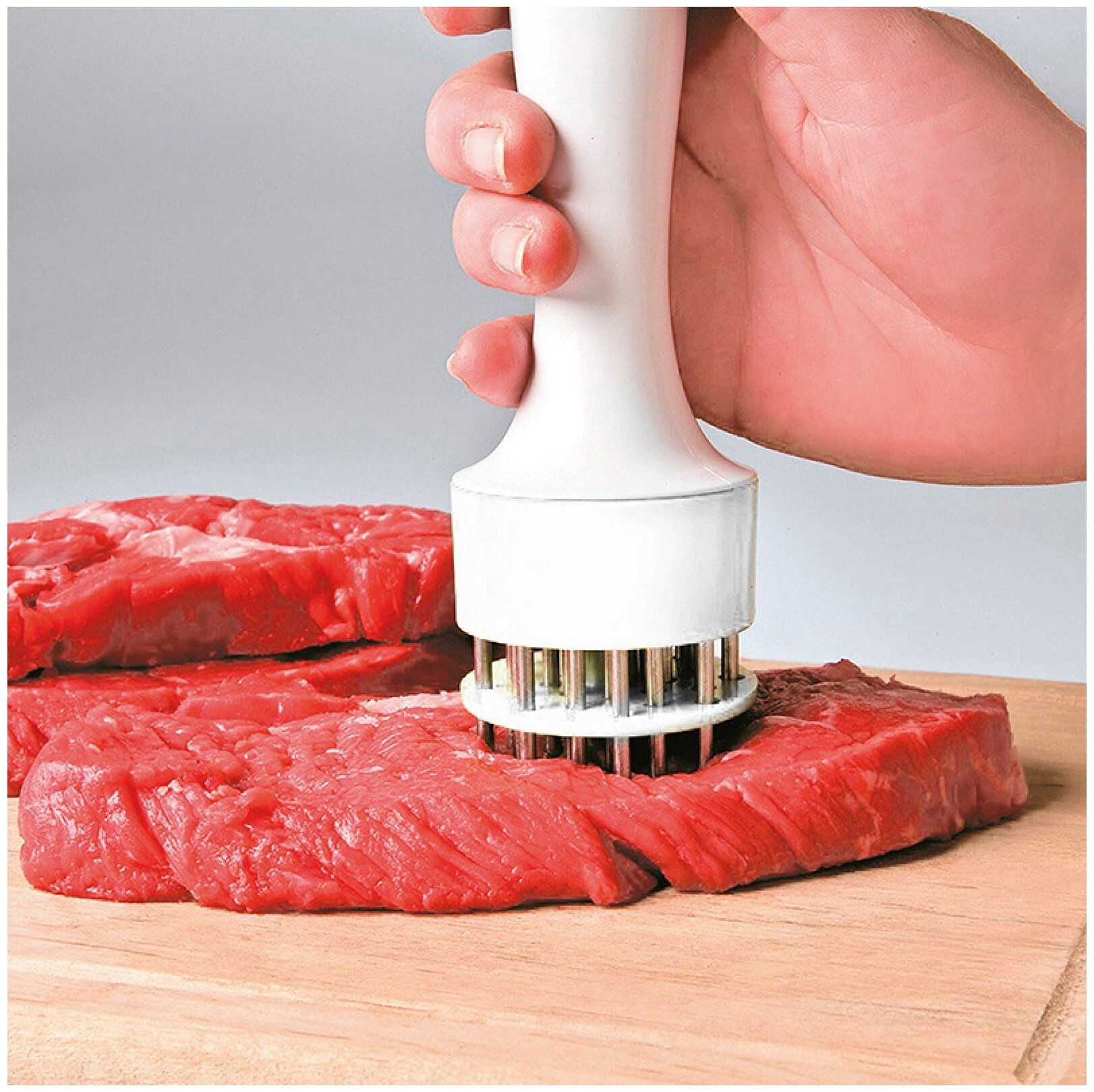 Размягчитель мяса MALLONY Carne будет незаменим на кухне. Тендерайзер снабжен острыми стальными шипами, которые протыкают мясо на глубину до 5 см. Иглы смягчают мышечную ткань и создают узкие каналы для лучшего проникновения маринадов и приправ. Также эти проколы ускоряют время приготовления стейков и отбивных, поскольку влага и тепло легко проходят через небольшие отверстия.