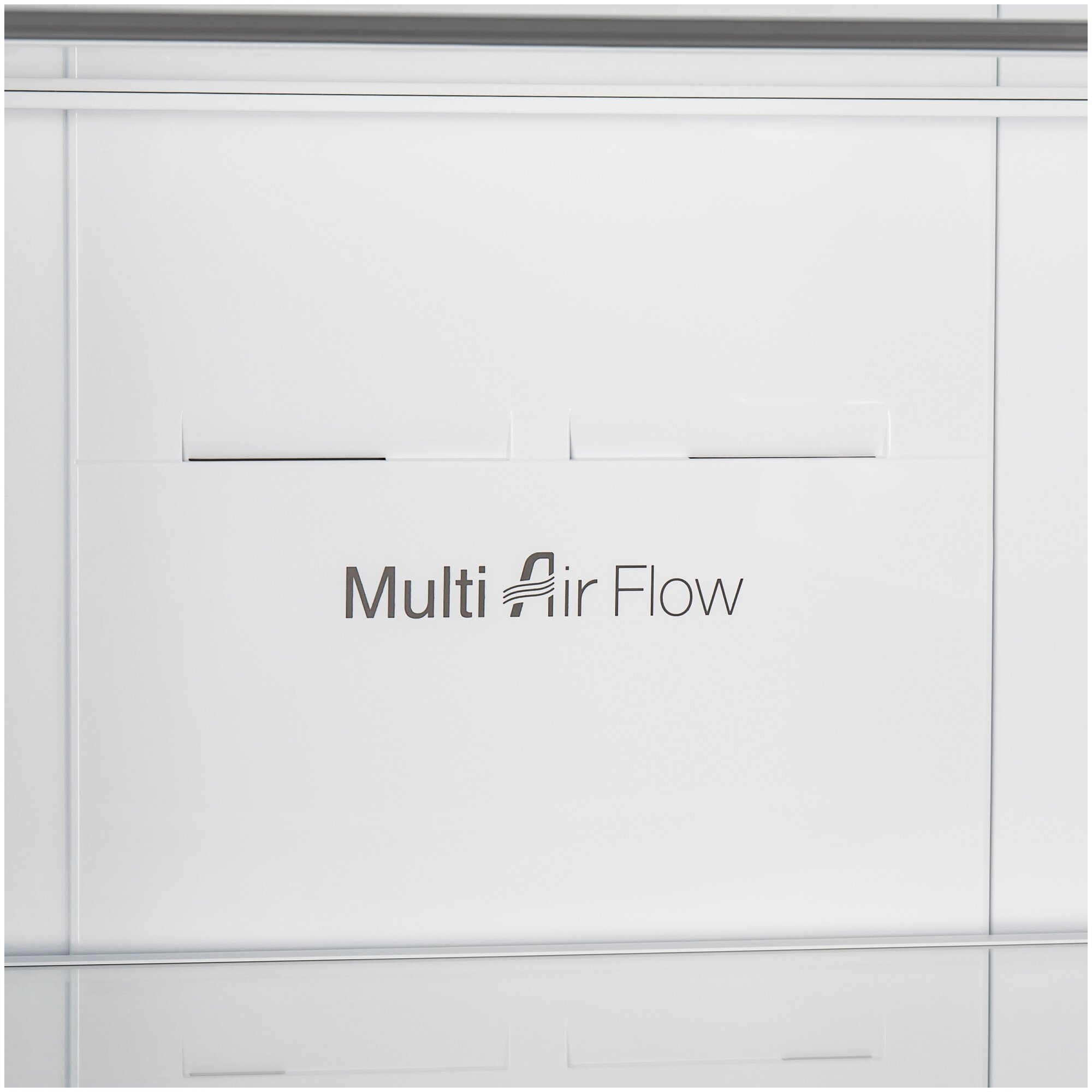 Maunfeld MFF1857NFBG – вместительный холодильник, объём которого составляет 453 л. Он хорошо подходит для хранения большого количества продуктов.