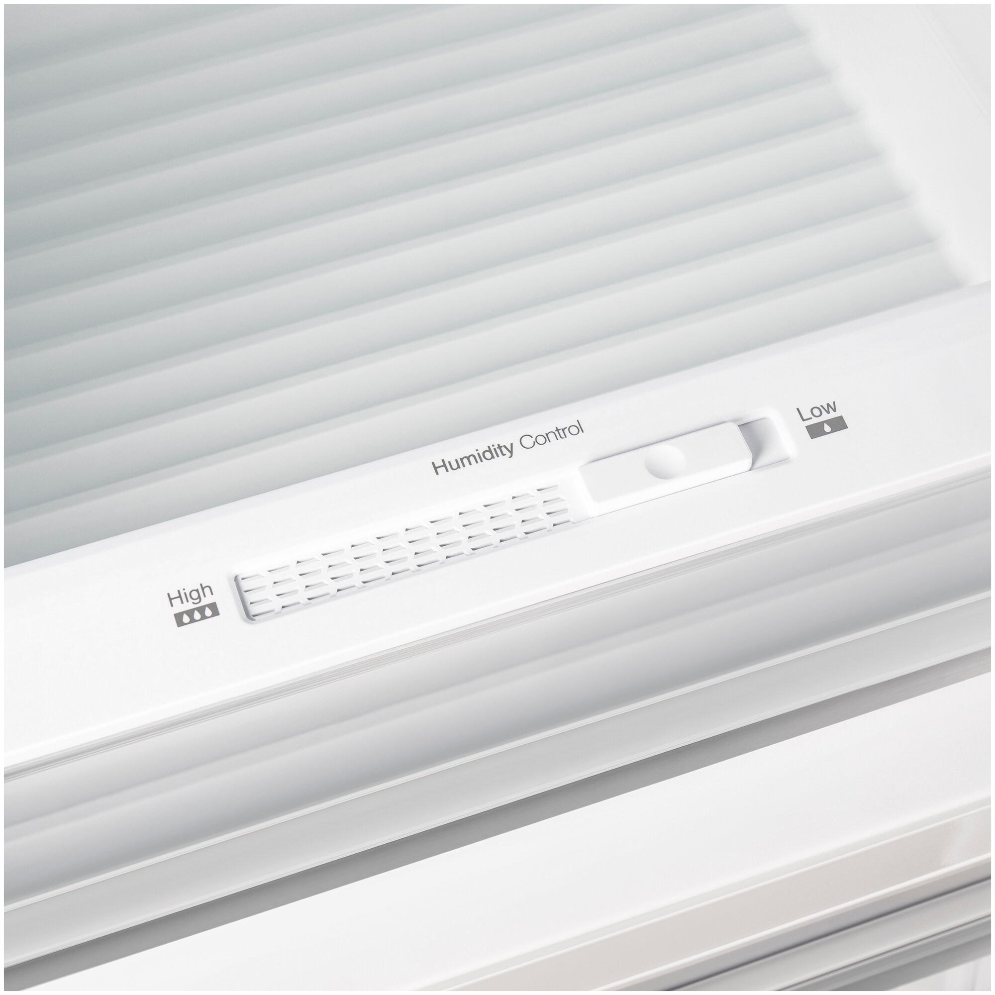 В этой модели есть дополнительный отсек с возможностью регулировки влажности. Он предназначен для недавно купленных фруктов и овощей.