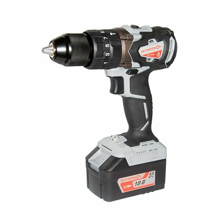 Аккумуляторная дрель-шуруповерт ИНТЕРСКОЛ ДАУ-13/18В с литий-ионным аккумулятором и вентильным бесщеточным двигателем. Ударный режим позволяет производить бурение камня, кирпича, бетона.