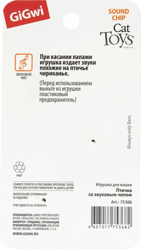 На сегодняшний день товар «Игрушка для кошек GiGwi птичка (размер: 13 см.)» можно купить с кешбеком в 3 магазинах: Бетховен, Яндекс.Маркет, ГЛОБУС