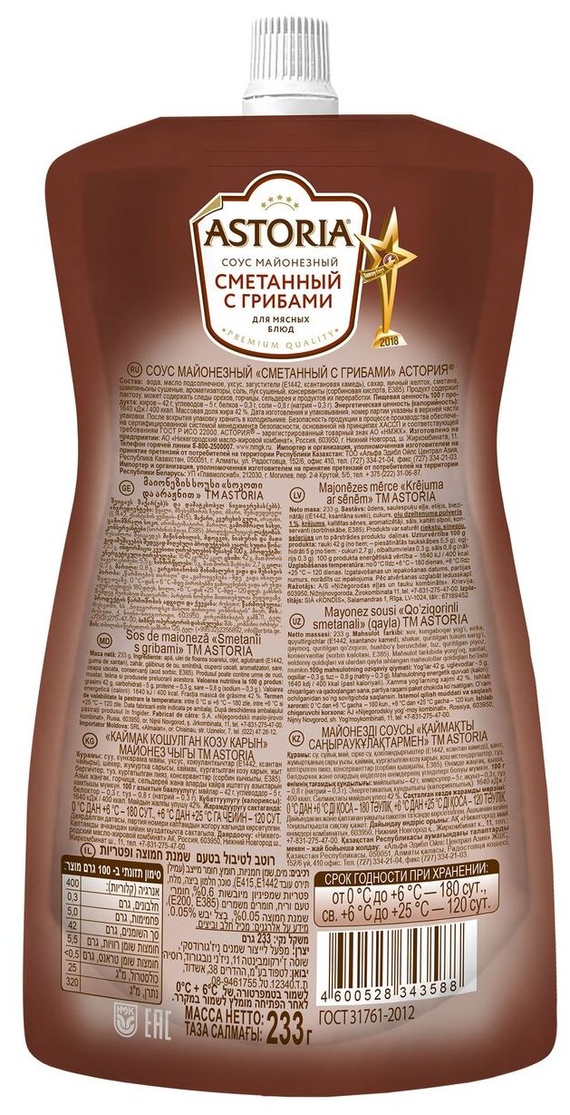 Соус майонезный "Астория" сметанный с грибами 233гр (Q0204006)