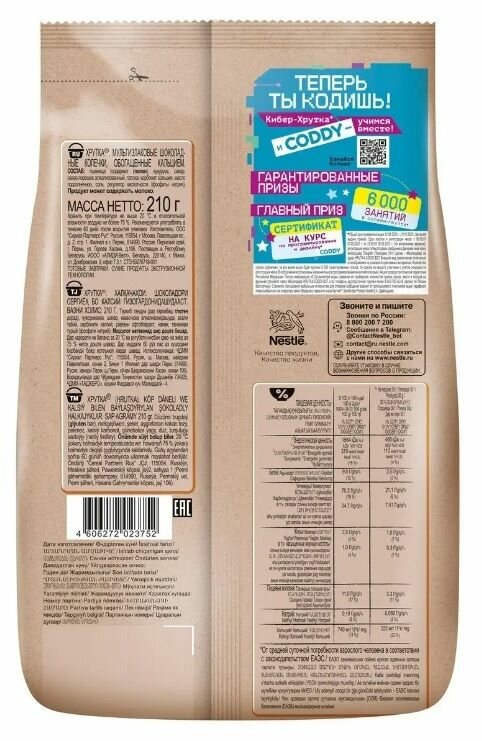 На сегодняшний день товар «Сухой завтрак Nestle Хрутка шоколадные колечки 210гр (12423301)» можно купить с кешбеком в 4 магазинах: Ашан, ГЛОБУС, Яндекс Еда, Яндекс.Маркет
