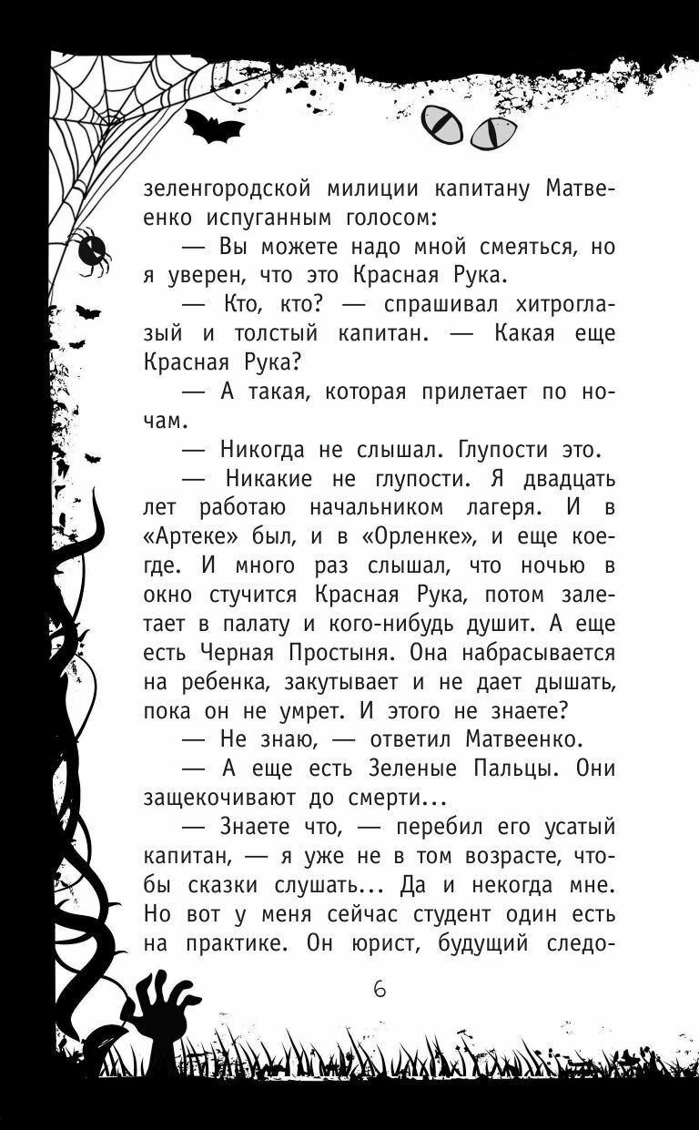 Красная Рука, Черная Простыня, Желтый Глаз и другие подобные сущности лучше всего себя чувствуют в детских учреждениях - школах и летних лагерях. И это объяснимо: там для них создается исключительно благоприятная атмосфера. А вот милиция против них совершенно бессильна, потому как нагана нечисть не боится. Чего она боится, берется выяснить молоденький стажёр Виктор Рахманов. Ох и натерпится он страха!