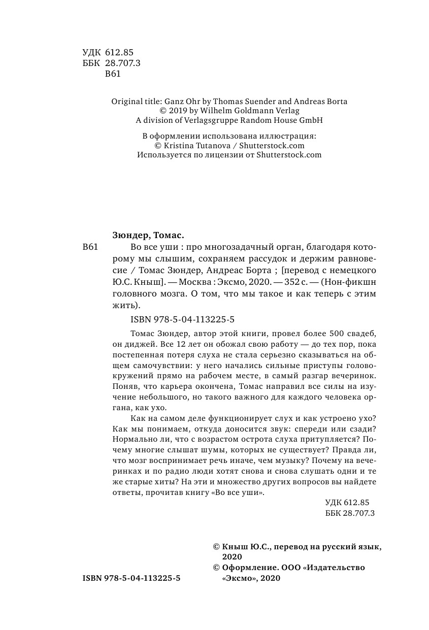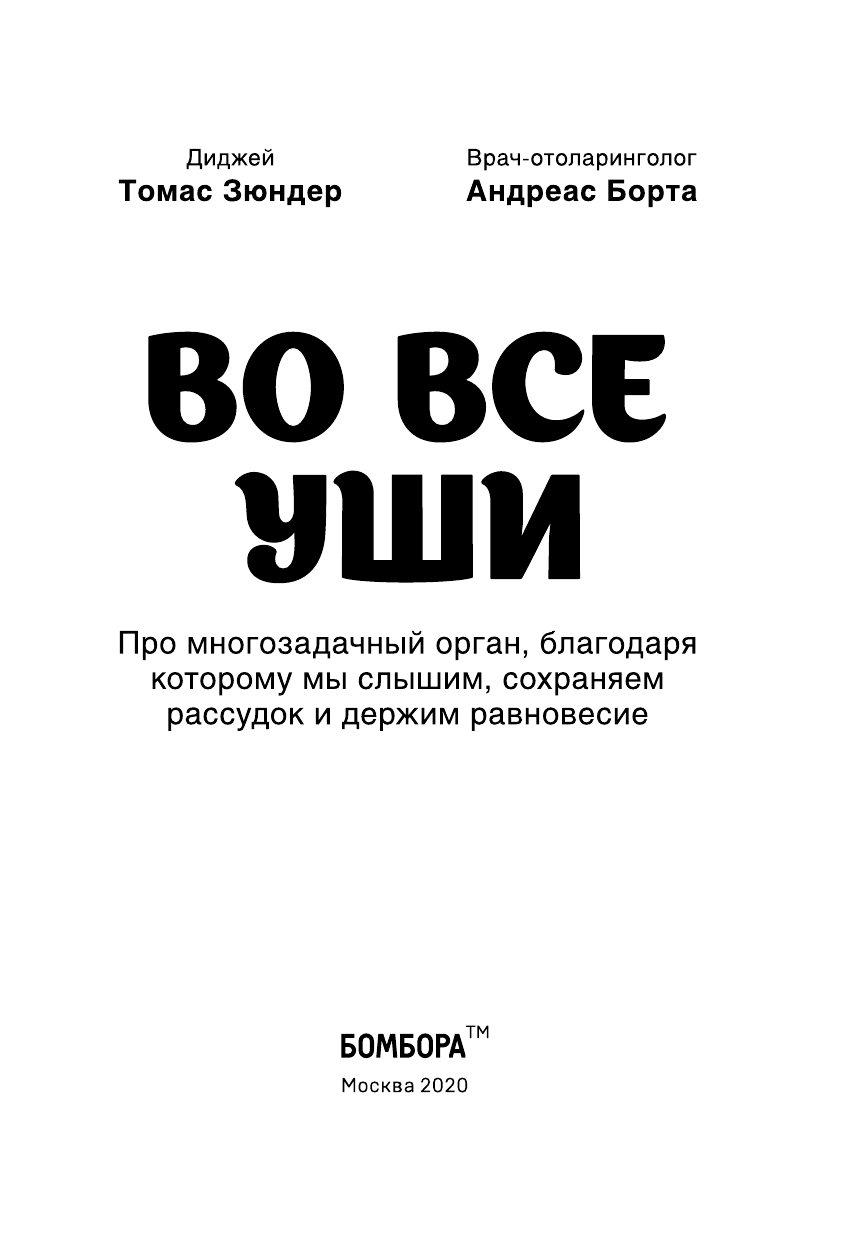 Во все уши. Про многозадачный орган благодаря которому мы слышим сохраняем рассудок и держим равновесие (Томас Зюндер, Андреас Борта); Бомбора, 2020