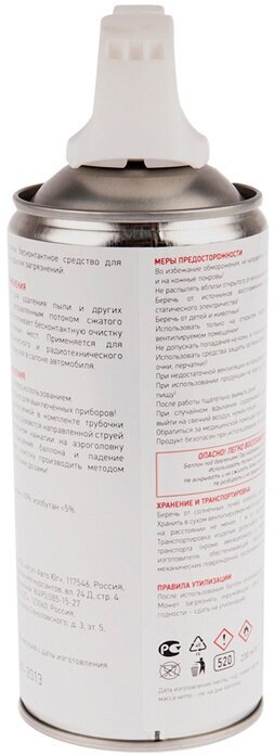DUST OFF – пневматический очиститель высочайшего давления. Сжиженный газ под высочайшим давлением, при нажатии на клапанную головку активно улетучивается, очищая плоскости сильной газовой струей.