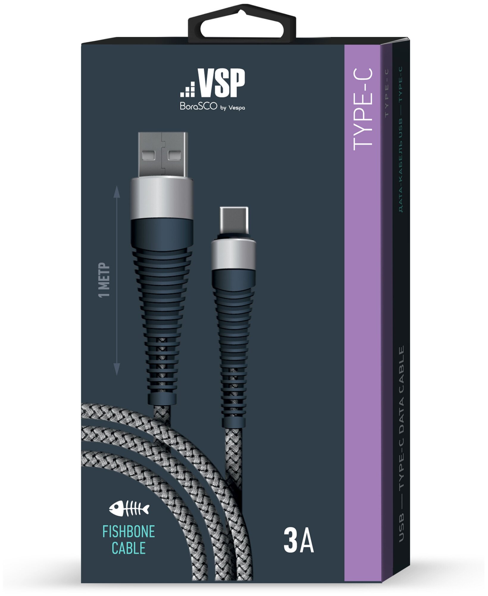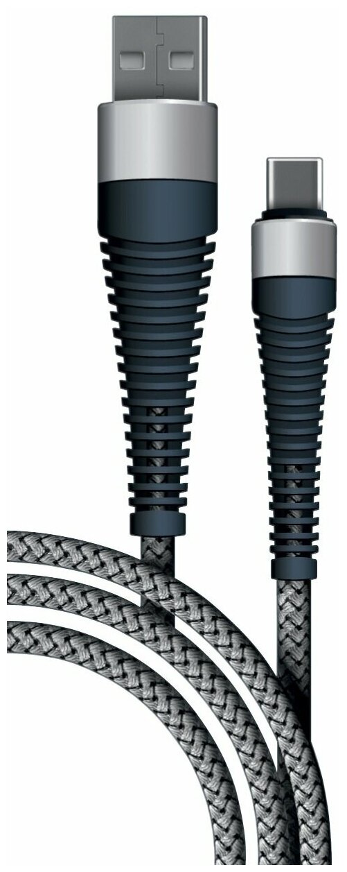 Кабель BORASCO Fishbone USB Type-C (m) USB A(m) 1м серый [38504]
