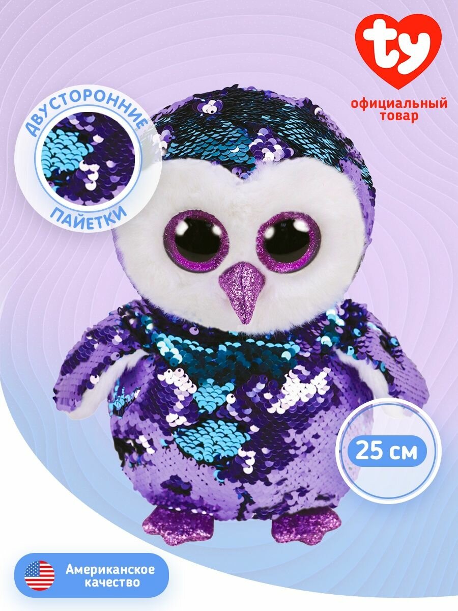 Мягкая игрушка TY Мунлайт сова с пайетками 25 см (размер: маленькая)