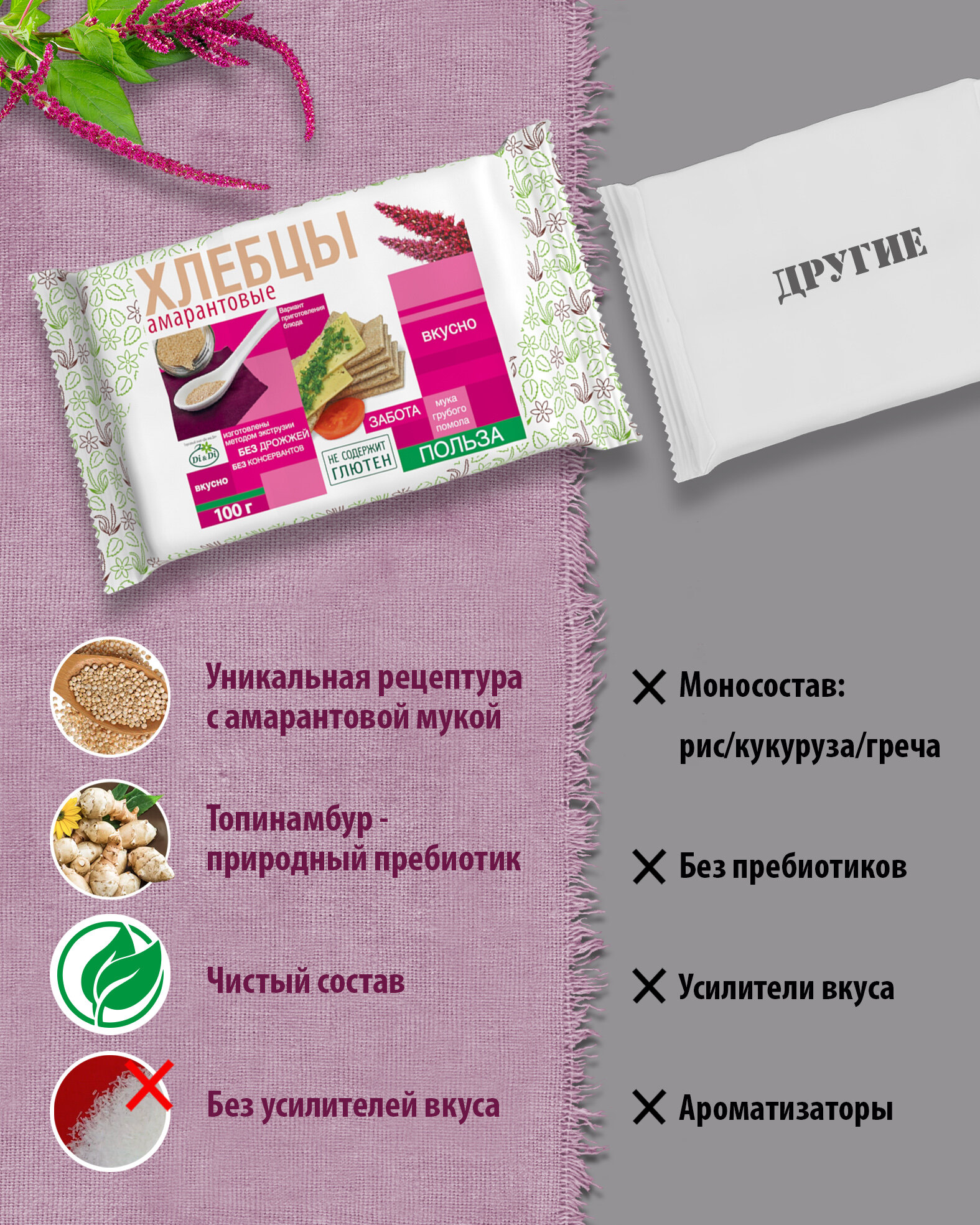 На сегодняшний день товар «Хлебцы амарантовые Di & Di шоубокс 100 г 12 шт. в уп. Di&Di Хлебцы амарантовые без глютена 100 г 12 шт.» можно купить с кешбеком в 1 магазине: Яндекс.Маркет