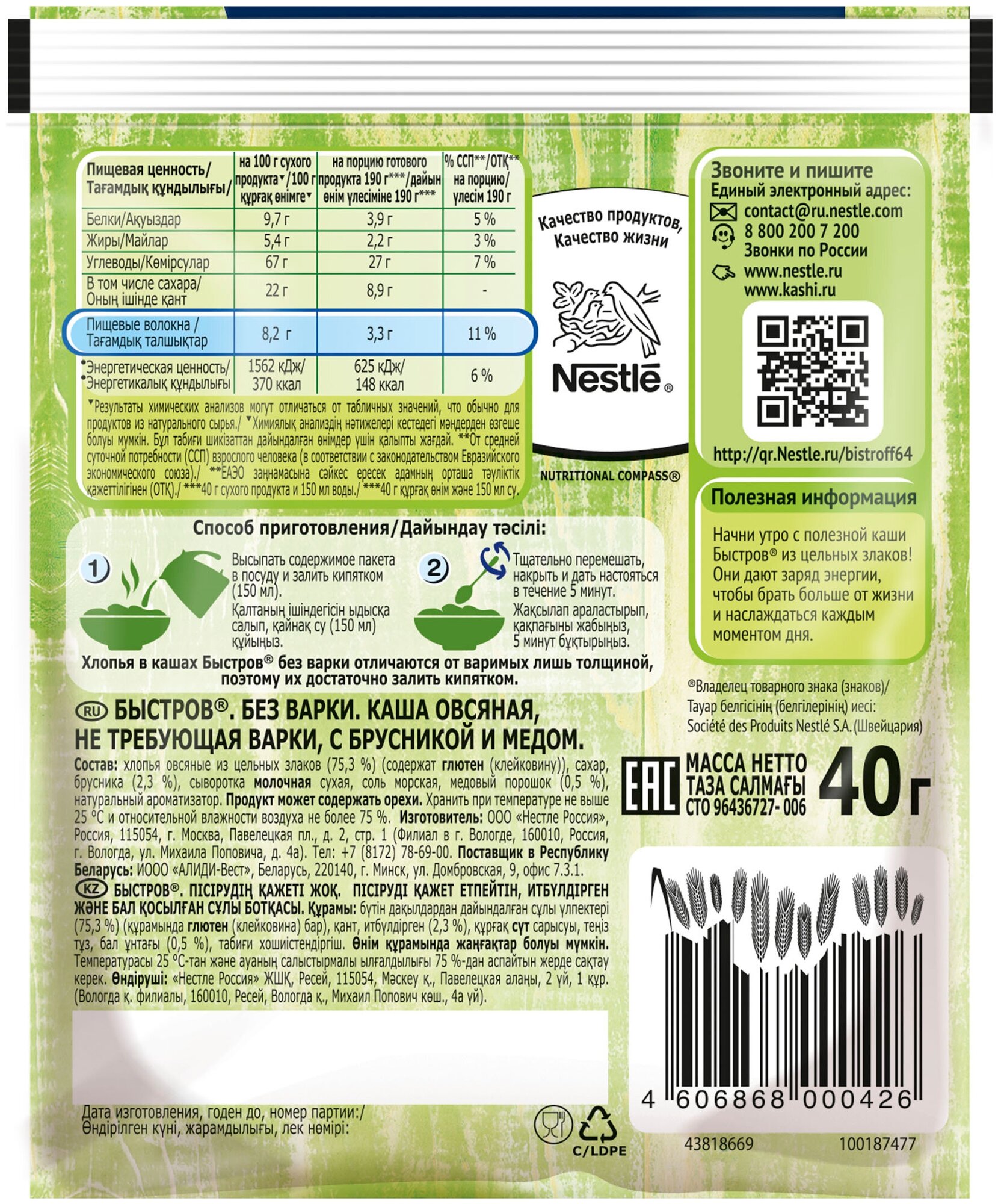 Каша овсяная Быстров брусника с медом 40гр Nestle (12328300)