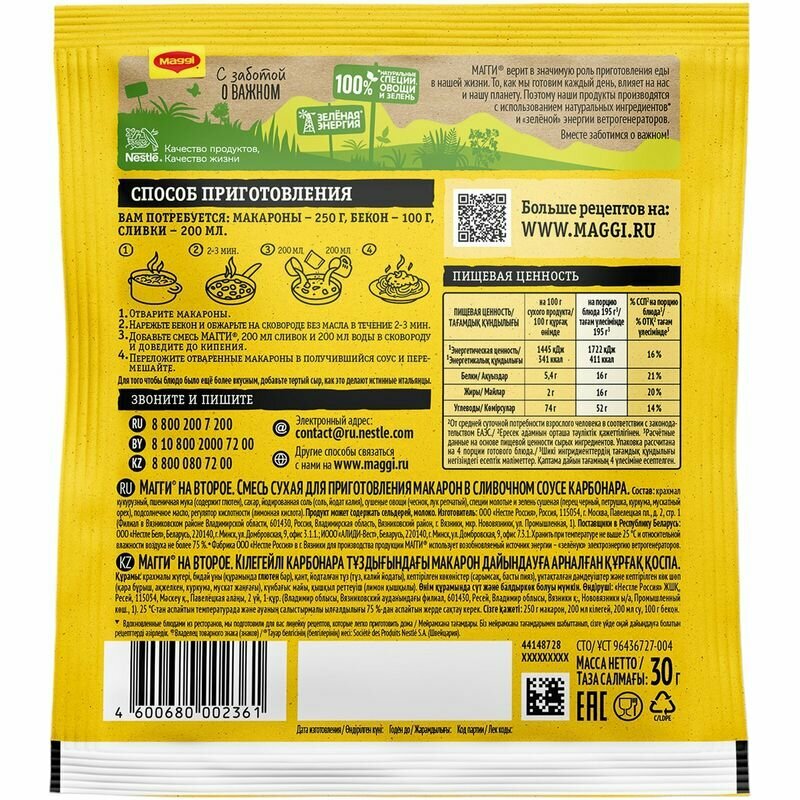 На сегодняшний день товар «Смесь Maggi На второе для макарон в сливочном оусе карбонара 30гр (12370593)» можно купить с кешбеком в 4 магазинах: Ашан, ГЛОБУС, Яндекс Еда, Яндекс.Маркет