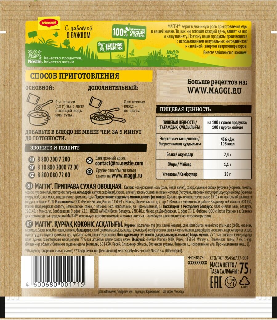 Приправа Maggi 10 овощей универсальная 75гр (12362573)