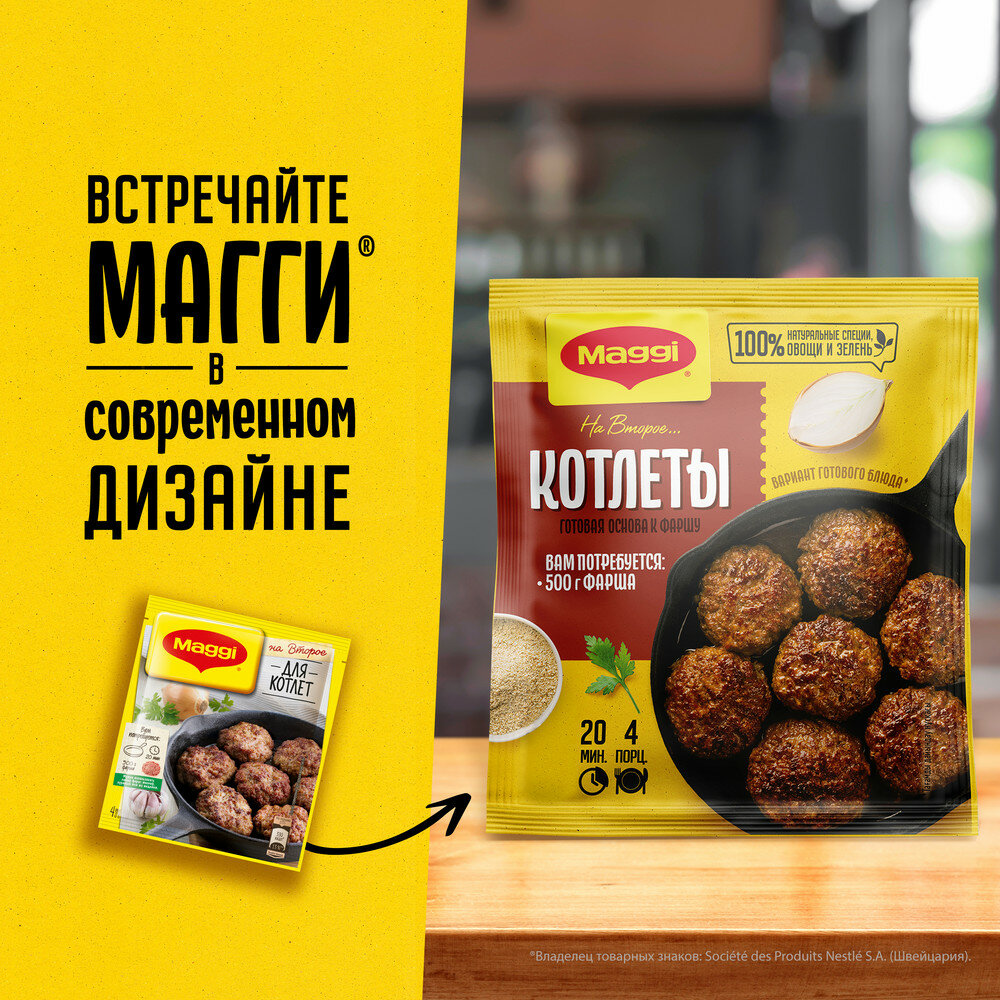 Нежные, сочные, ароматные котлеты — любимое блюдо из детства. У всех, конечно же, есть свой проверенный семейный рецепт. MAGGI На второе для котлет предлагает по-новому взглянуть на привычное блюдо и попробовать замечательный рецепт котлет для приготовления без лишних хлопот. Уникальная композиция натуральных овощей, ароматных трав и пряных специй и пошаговая инструция помогут вам приготовить гарантировано вкусное блюдо на обед или ужин для всей семьи.