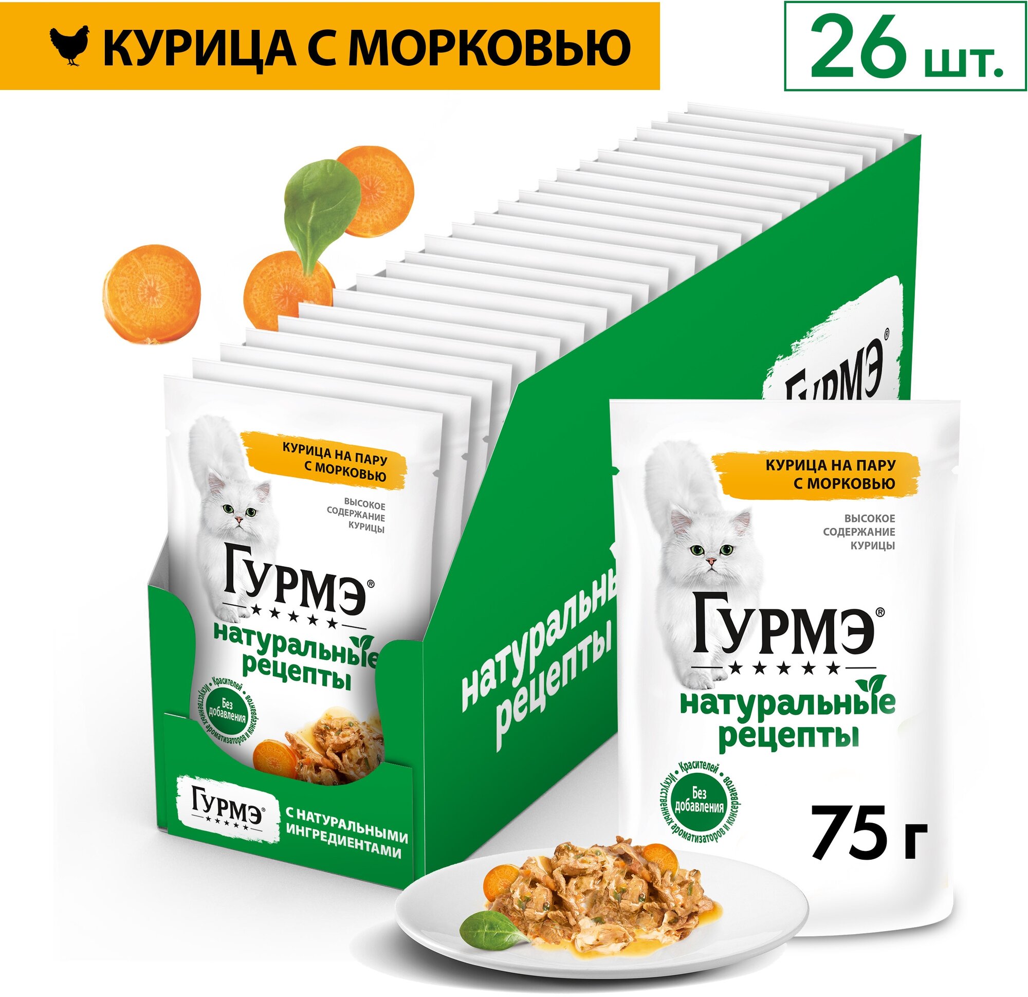 Влажный корм Gourmet для кошек Натуральные рецепты курица с морковью 75 г