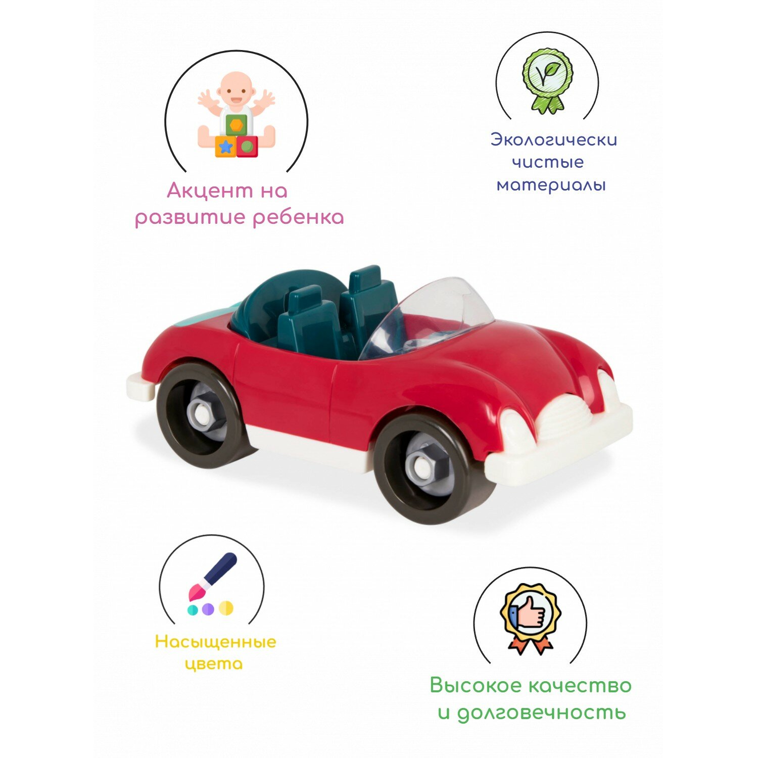 Игрушка конструктор Battat Кабриолет выполнена из прочного пластика ярких цветов. Процесс сборки машины поможет ребенку развить мелкую моторику пальчиков, внимательность и усидчивость.
