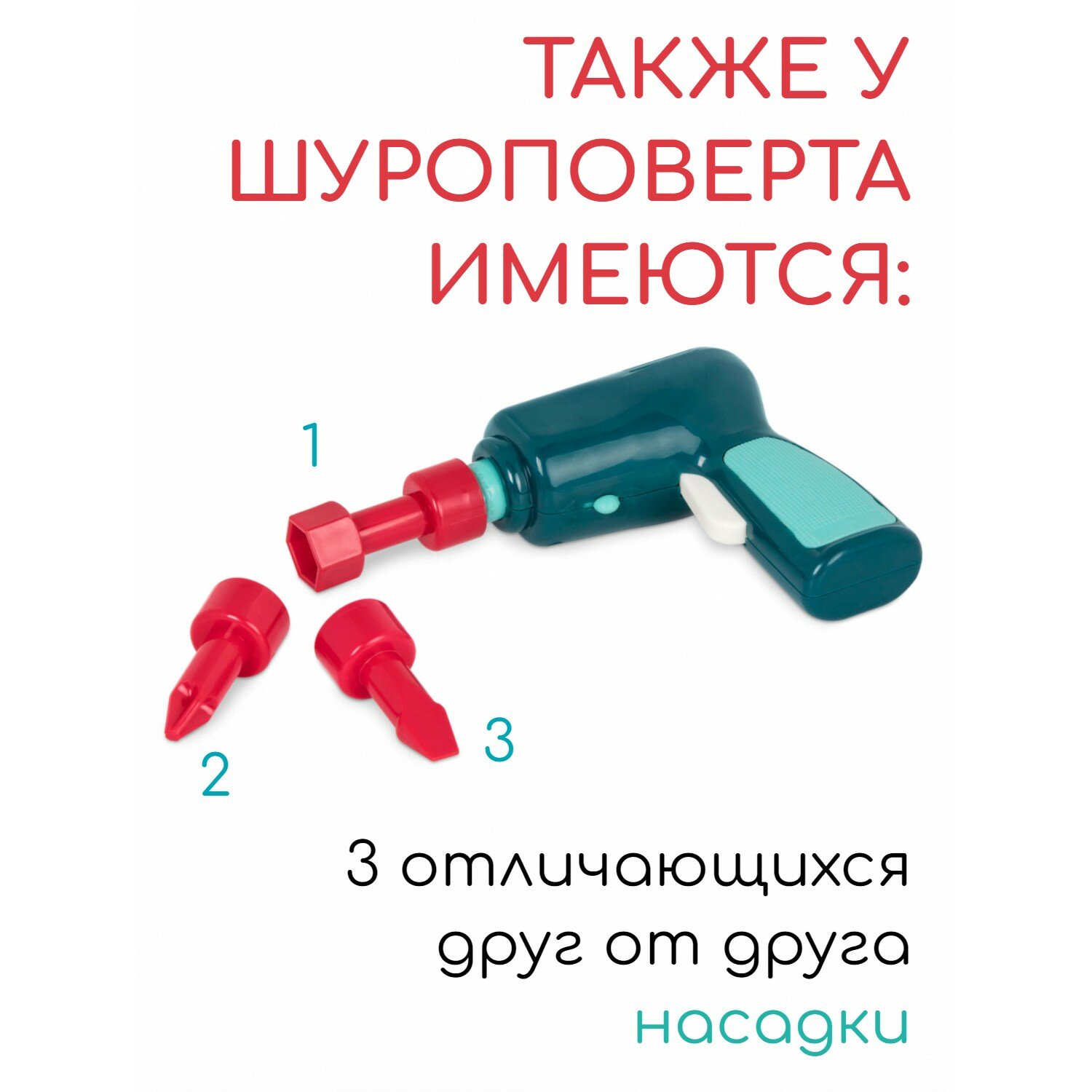 При помощи пластикового шуруповерта игрушку можно разбирать и собирать множество раз, как конструктор. Пластиковая отвертка работает на батарейках, крутится в двух направлениях.