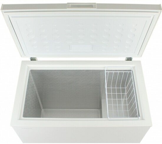 Морозильный ларь LERAN SFR 200 W сохранит свежесть ваших заготовок и полуфабрикатов. Устройство с электронным управлением обладает высокой надёжностью и станет полезным дополнением в хозяйстве. Ларь совмещает комфорт вертикальной загрузки и внушительный полезный объём — 200 литров. Одним из преимуществ морозильного ларя является возможность заморозки крупных кусков мяса или рыбы без разделывания. Благодаря электронному управлению легко настроить температуру или воспользоваться функцией суперзаморозки. Светодиодные индикаторы служат не только для контроля состояния прибора, но и подскажут выбранный температурный режим. Внутри камеры расположена пластиковая корзина, она имеет малый вес и помогает более эффективно использовать пространство. При необходимости освободить место корзину можно легко убрать. Благодаря вертикальной загрузке холодный воздух остаётся внутри ларя, снижаются перепады температуры и расход электроэнергии. Годовое потребление составляет всего 280 кВт/год и соответствует высокому классу энергоэффективности А. Современный компрессор работает тихо, уровень громкости не превышает 42 дБ. Скрытые ручки расположены спереди и по бокам, таким образом крышку можно открыть с любой стороны. Морозильный ларь будет проще переместить благодаря колёсикам с одной из сторон.