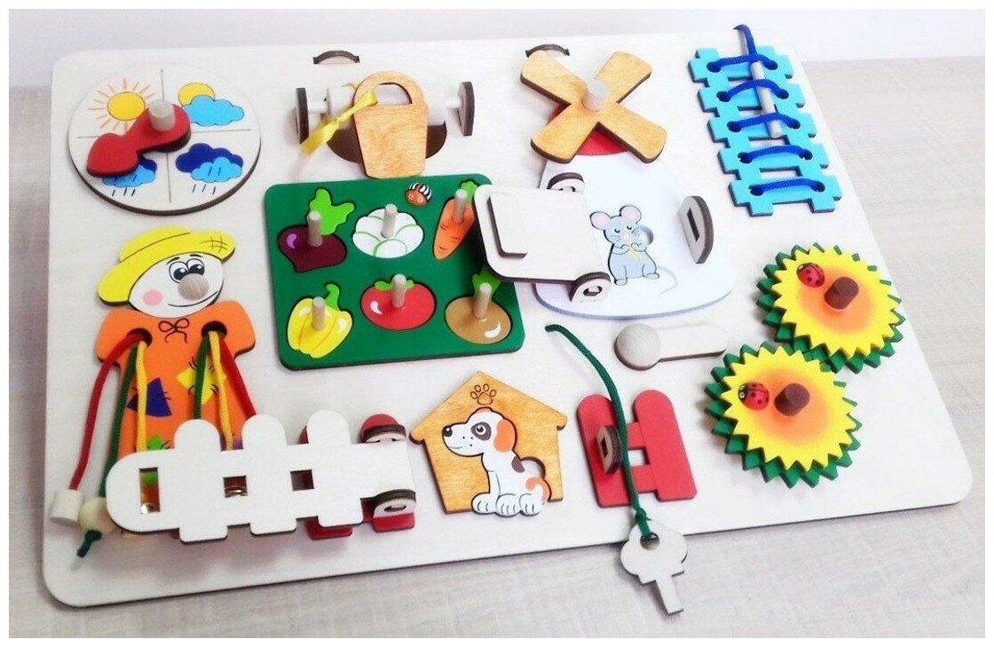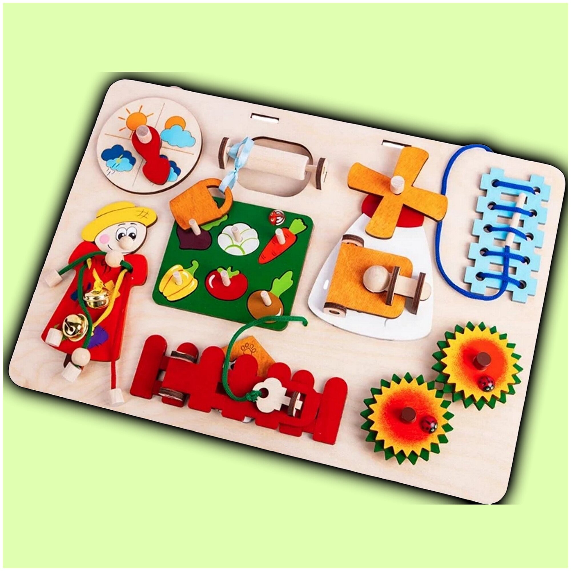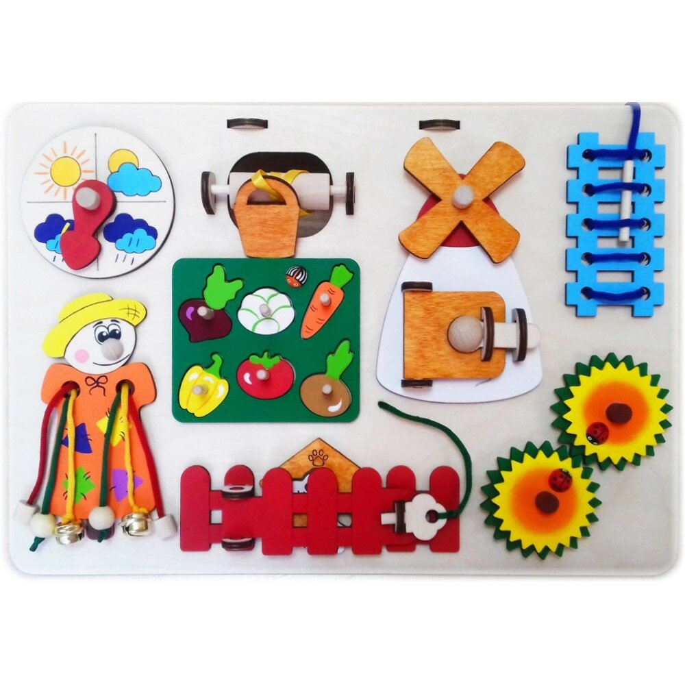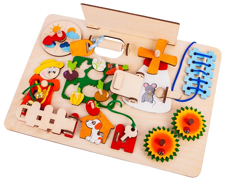 На одной панели большого формата собрано сразу несколько интересных развлечений для любознательного ребенка: